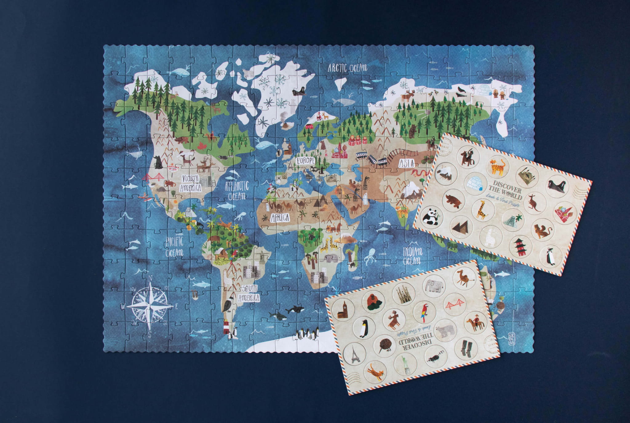 Dodatkową atrakcją są zawarte w opakowaniu żetony, przedstawiające budynki, zwierzęta czy postacie. Zabawa polega na tym, aby odnaleźć na ułożonej mapie Świata dany element. Zadanie może okazać się wyjątkowo trudne. Warto, aby rodzice byli blisko i pomagali w rozwiązywaniu zagadek.