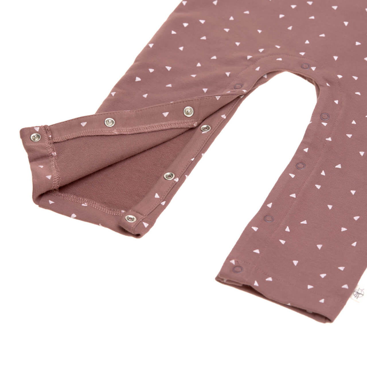 Tworzywo przyjazne dla skóry, z mieszanki organicznej bawełny (GOTS) i elastanu, jest bardzo miękkie, zachowuje kształt i delikatnie otula skórę dziecka. Świetne detale, takie jak praktyczne i ładne taśmy z guzikami oraz ciągłe zapięcie na napy w kroku, ułatwiają ubieranie, rozbieranie i zmianę pieluchy.