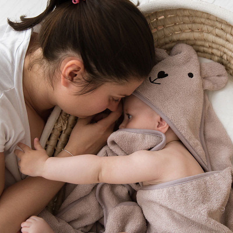 Ręcznik bambusowy z kapturkiem 85x85cm – latte