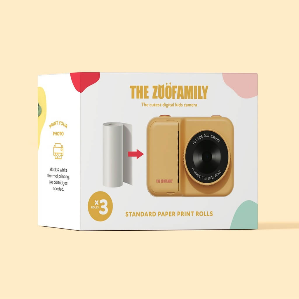 Wszystkie aparaty dla dzieci z funkcją druku zawierają 3 rolki papieru. Niemniej jednak, możesz także dokupić zestaw dodatkowych rolek! Z jednej rolki papieru można wydrukować około 225 zdjęć.