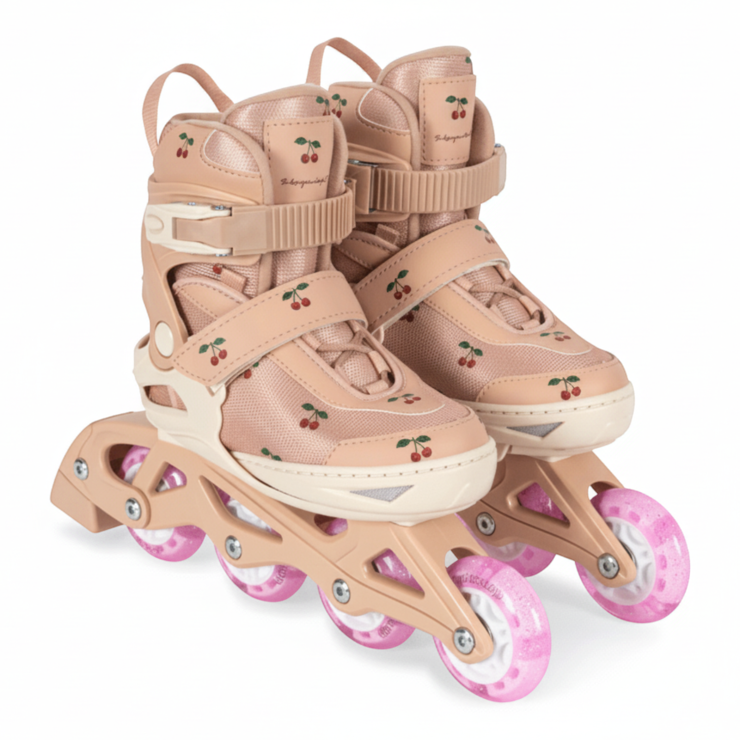 Rolki wykonane z wytrzymałego poliestrowego materiału, z solidną ramą, ochraniaczem palców i stabilnym mankietem podtrzymującym kostkę. Kółka wykonane z polipropylenu (PP) i poliuretanu (PU) zapewniają płynną jazdę i dobrą przyczepność.