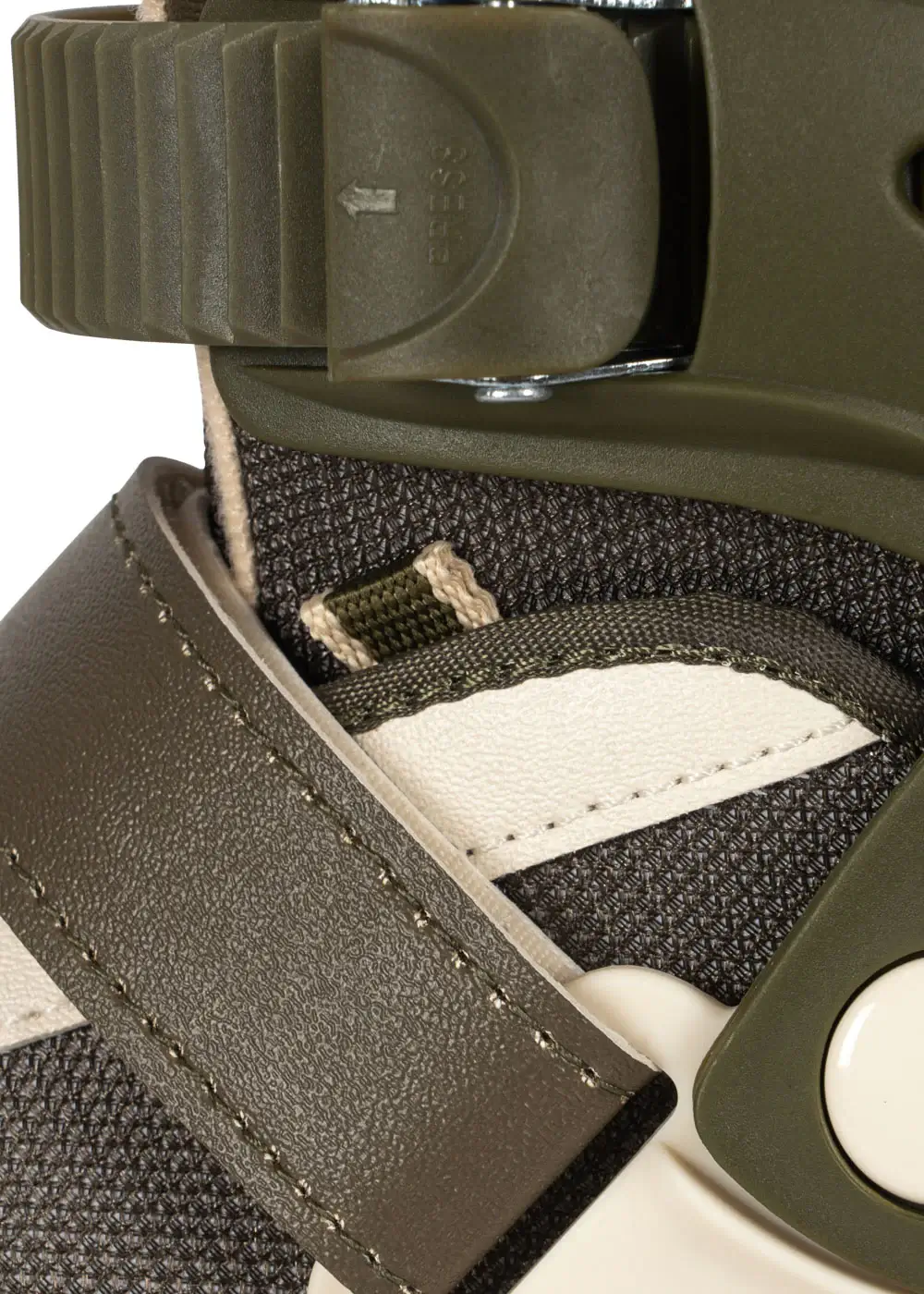 Rolki wykonane z wytrzymałego poliestrowego materiału, z solidną ramą, ochraniaczem palców i stabilnym mankietem podtrzymującym kostkę. Kółka wykonane z polipropylenu (PP) i poliuretanu (PU) zapewniają płynną jazdę i dobrą przyczepność.