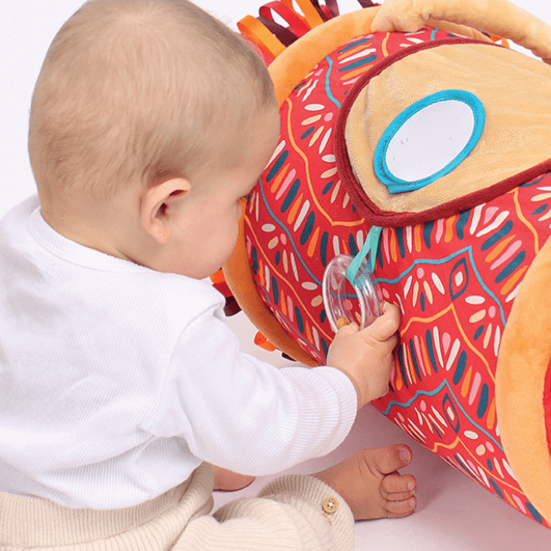 Stymuluje do aktywności – turlania, raczkowania, wspinania się i balansowania – pomagając dziecku budować umiejętności motoryczne, doskonalić zręczność i koordynację wzrokowo-ruchową.