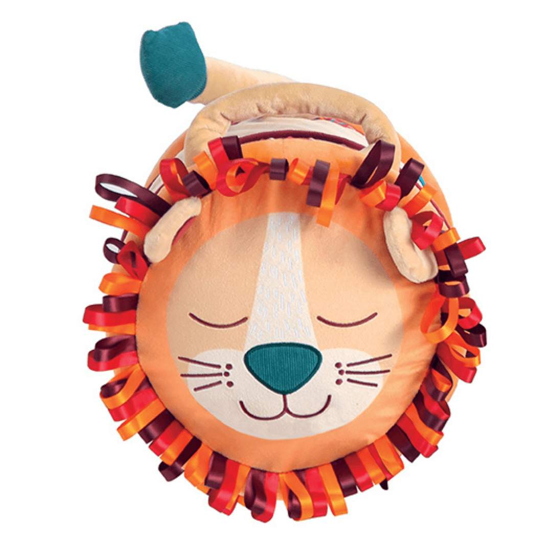 Wałek motoryczny z piłkami dźwiękowymi i wyjątkowym pokrowcem, który przemienia cylinder w przyjaznego lwa
