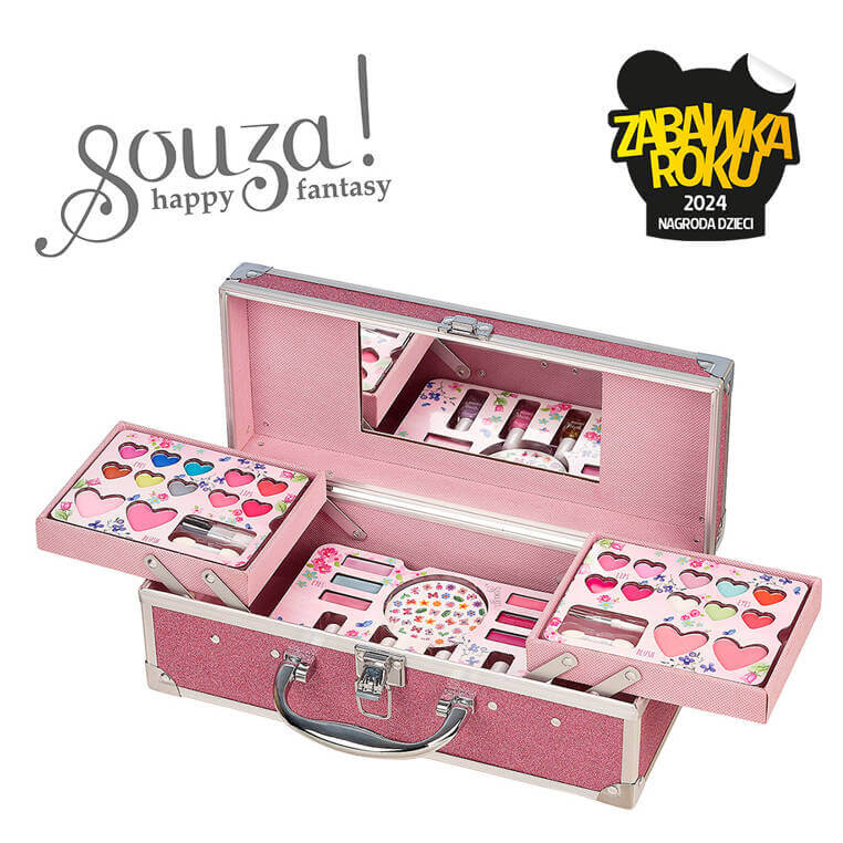 Duży zestaw kosmetyków do makijażu dla dzieci w rozkładanej, dwupoziomowej walizce z lusterkiem holenderskiej marki Souza!