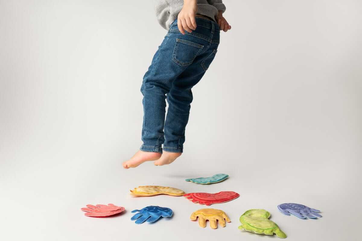 - woreczki sensoryczne, doskonalące umiejętności motoryczne poprzez chwytanie palcami stóp, rzucanie i podawanie, czy układanie wieży. Trzecią opcją jest nawiązanie do gry Twister, gdzie dziecko kładzie swoje dłonie i stopy na stópkach i dłoniach z zabawki.
