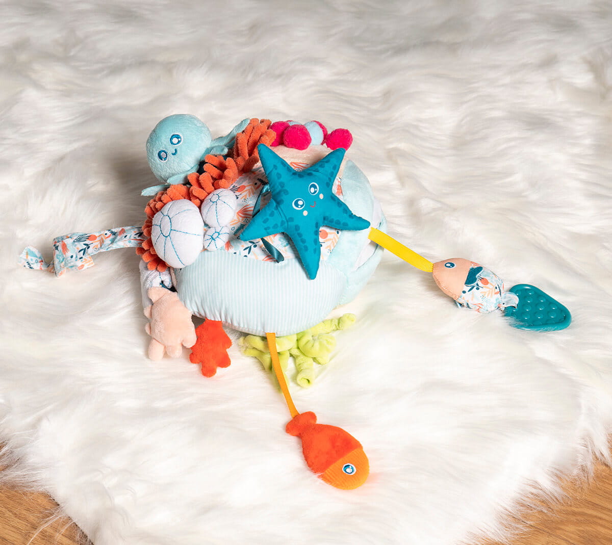Stymulacja zmysłów to jedna z najważniejszych i dających najwięcej zabawy i aktywności. Twojemu dziecku spodoba nie oglądanie, dotykanie, gryzienie i nasłuchiwanie mięciutkiej rafy koralowej. Pokocha odkrywanie jej tajemnic i poruszanie grzechotką w kształcie małej ośmiorniczki. Zabawka pozwoli mu od małego poznawać stworzenia z głębi mórz i ich ogromne znaczenie.