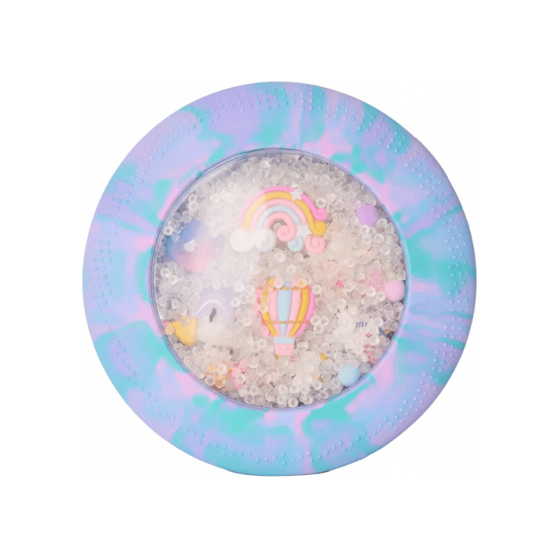 - Uspokajająca zabawa sensoryczna – delikatne ściskanie woreczka, przesuwanie elementów i obserwowanie ruchu wewnątrz działa wyciszająco;