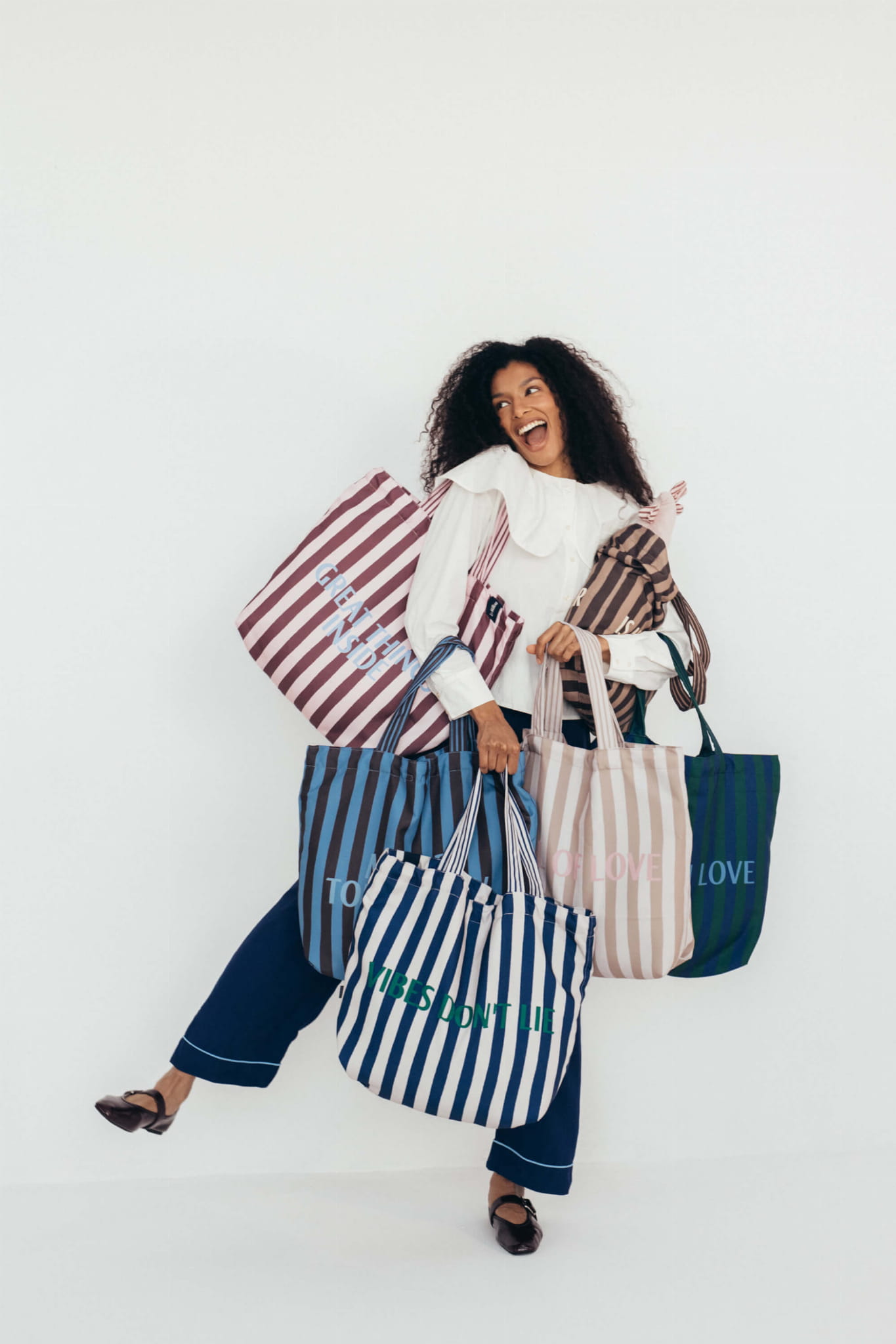 Shopper Bag z kieszonką HYGGE - STRIPES NAVY