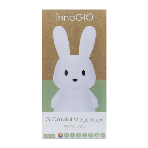 GIOrabbit Mega Maxi jest idealny do pokoju dziecka w każdym wieku. Delikatnie rozproszone światło lampki jest niezastąpione podczas nocnego przewijania i karmienia. Starsze dzieci pokochają GIOrabbit i stanie się niezastąpioną lampką nocną, zapewniającą spokojny sen i chroniącą przed strachem związanym z ciemnością. W dzień będzie piękną dekoracją pokoju.