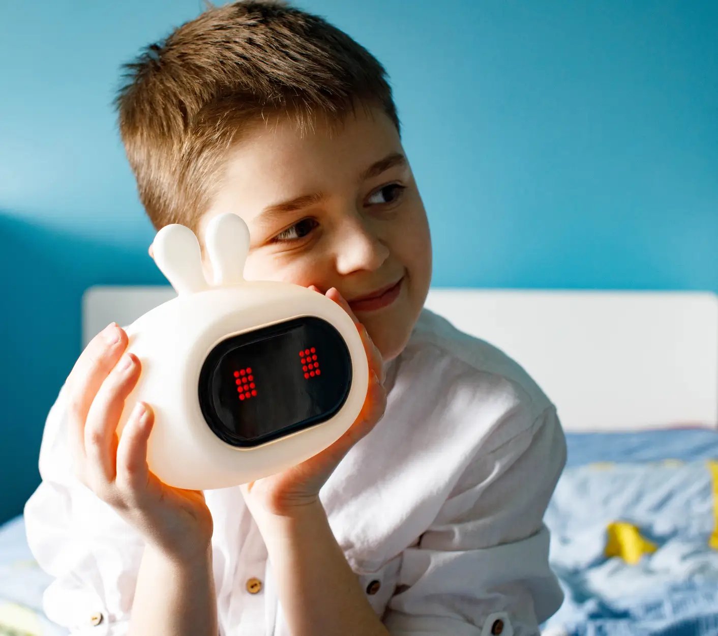 GIOrabbit to jeden z najnowszych modeli lampeczek InnoGIO. Świecący aż w 8 kolorach króliczek łączy w sobie funkcje lampeczki oraz zegara z budzikiem. Wyświetlacz lampki pokazuje godzinę na przemian z wesołymi minkami, którym podczas zmiany towarzyszą równie zabawne dźwięki.