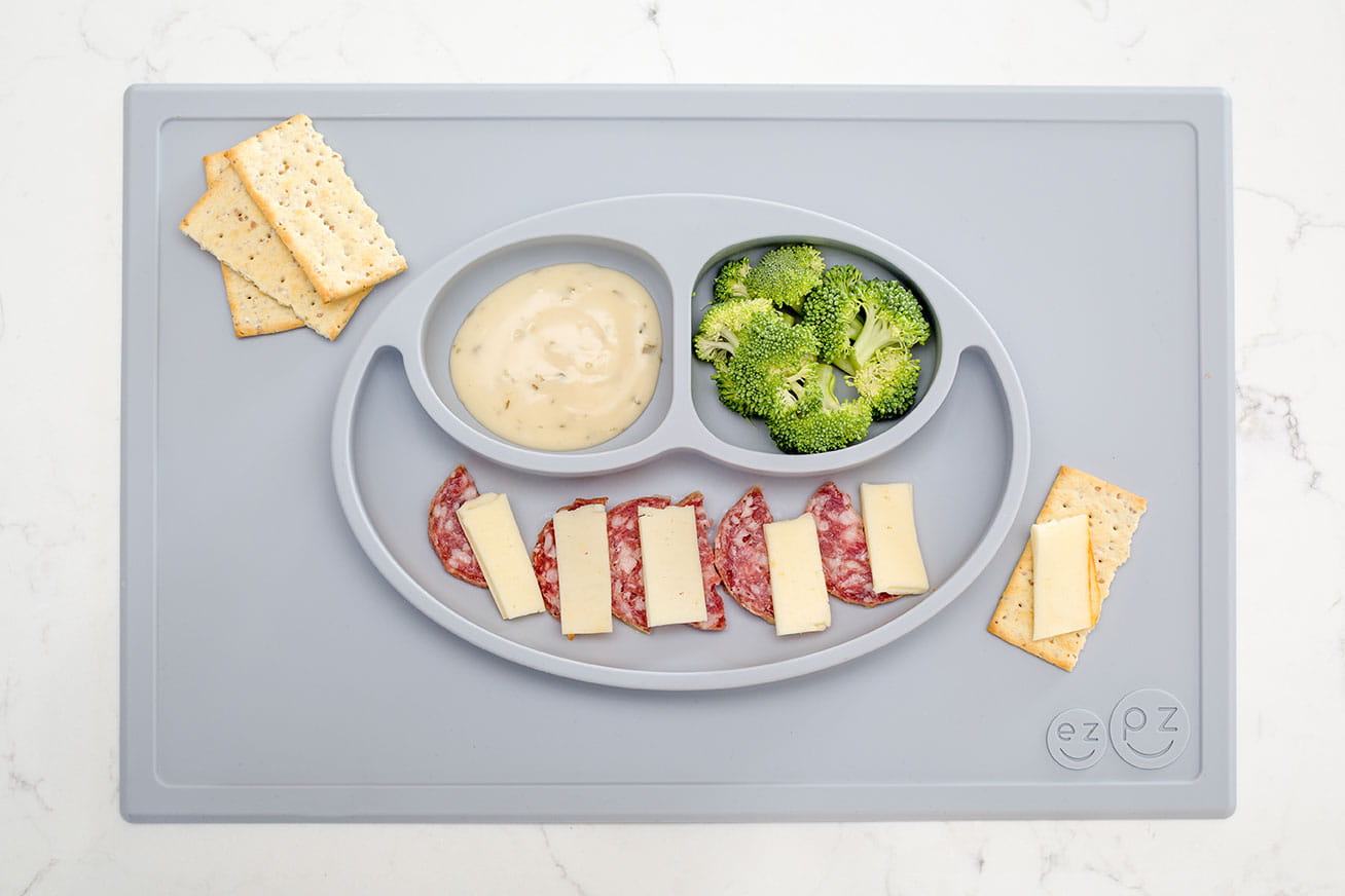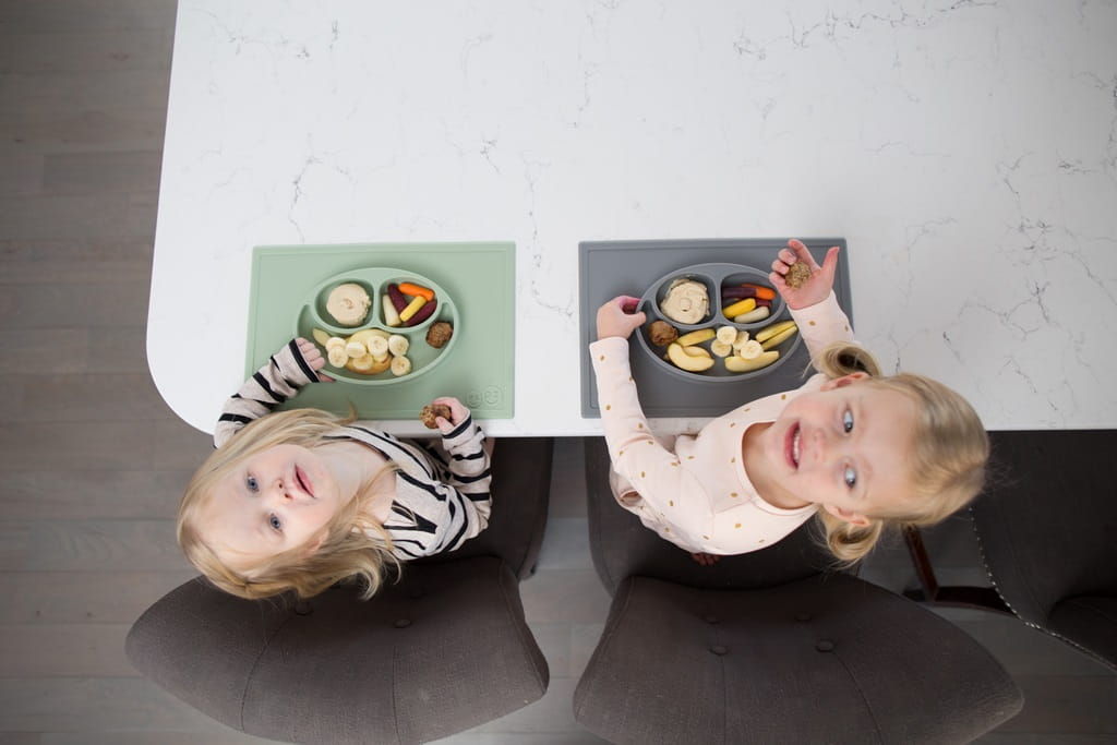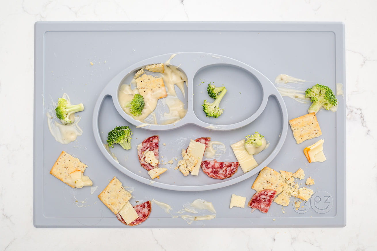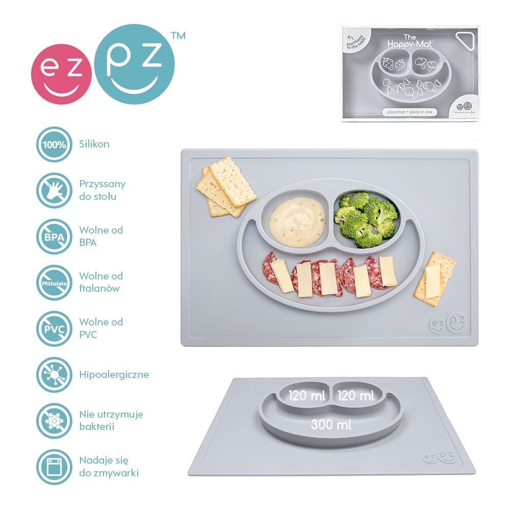 Silikonowy talerzyk z podkładką 2w1 Happy Mat pastelowa szarość