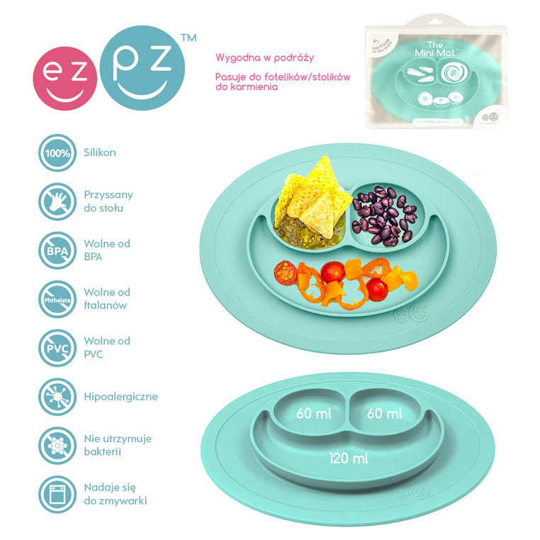 Silikonowy talerzyk z podkładką mały 2w1 Mini Mat miętowy