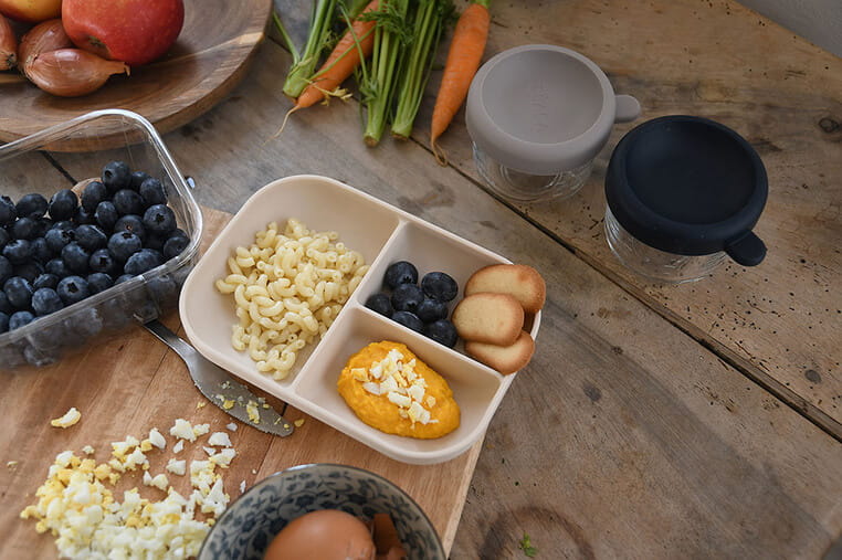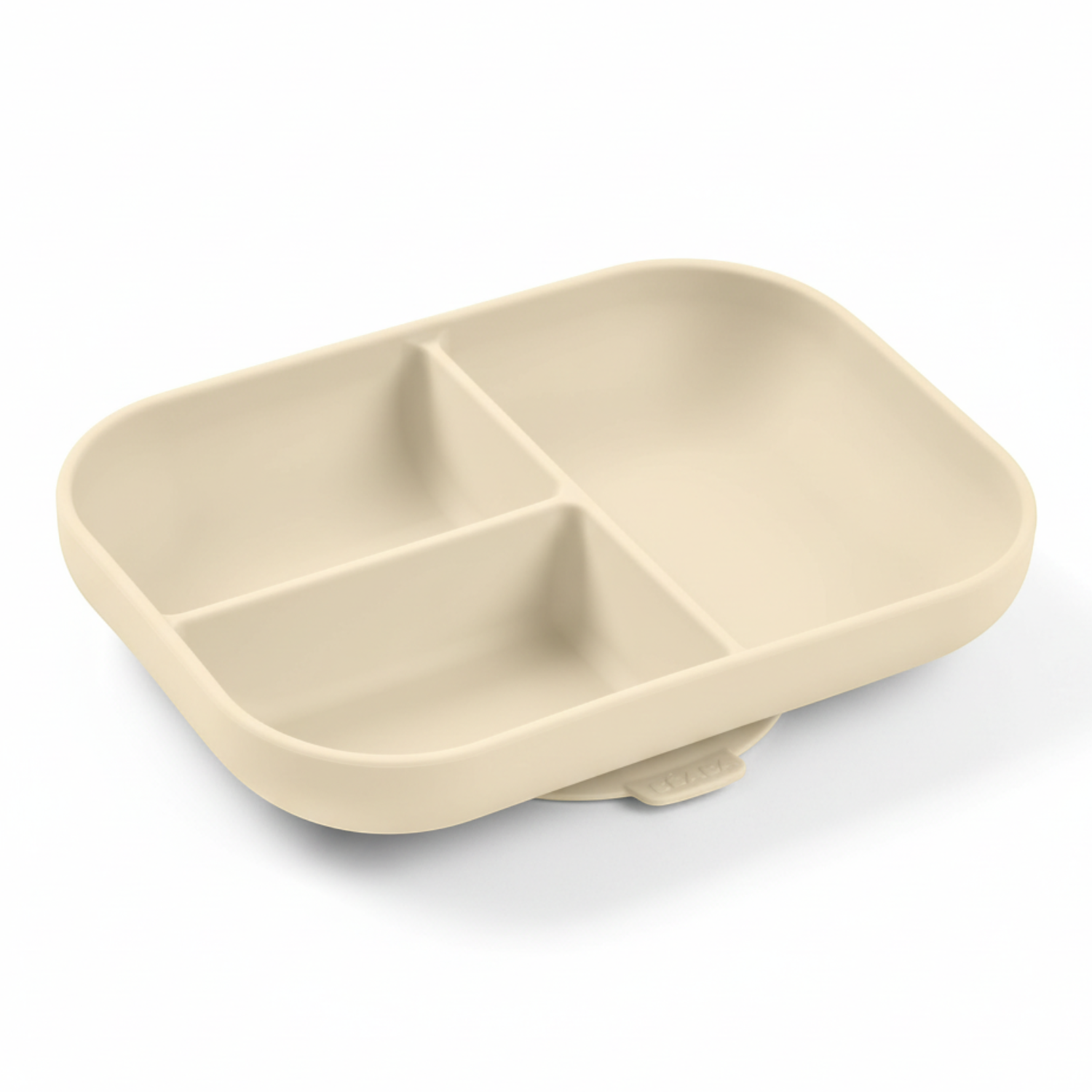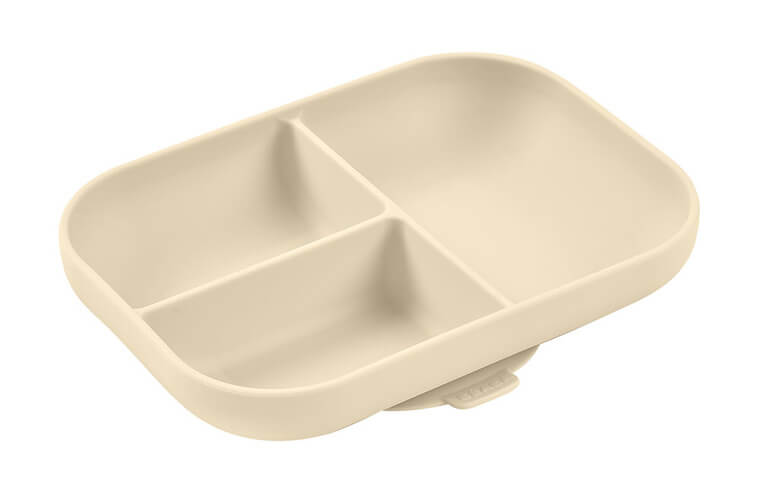 Silikonowy trójdzielny talerzyk z silikonu francuskiej marki BEABA zaprojektowany z myślą o wygodzie i samodzielności malucha