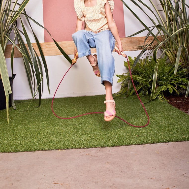 Miękki granatowy sznurek ma 2 metry długości, a rączki o wydłużonym kształcie są wygodne do trzymania przez dziecko. Jeden z uchwytów jest w kolorze drewna i kończy się szerszym elementem z grafiką burzowej chmury na ciemnym tle, drugi jest niebieski, a jego końcówka ma kształt głowy nosorożca. Skakanka to doskonała zabawka zarówno dla starszych, jak i młodszych dzieci. Zachęca do aktywności, rozwija sprawność ruchową, sprawdzi się, np. na pikniku czy urodzinowym przyjęciu. Skakanka idealnie nadaje się na prezent.