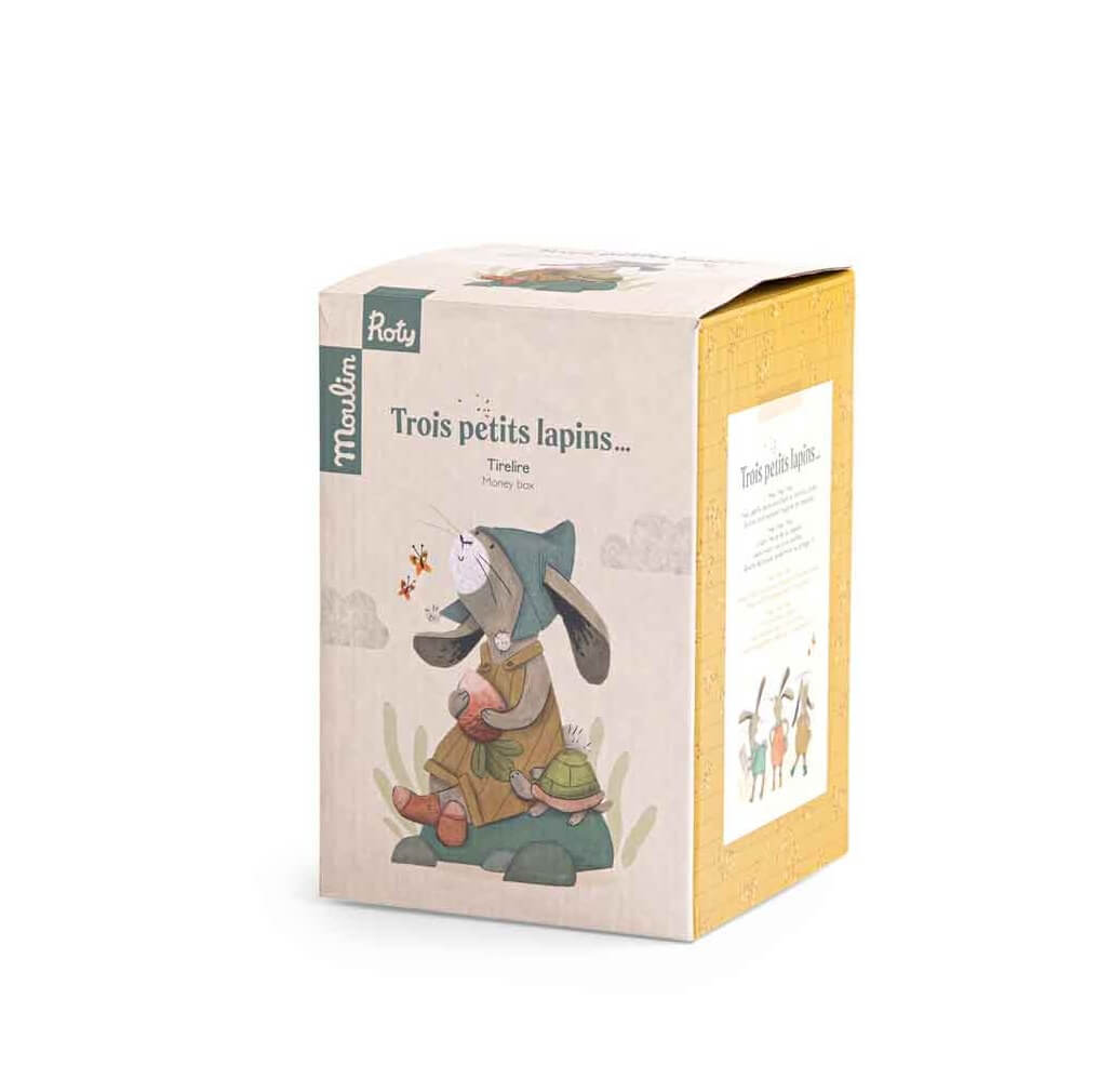 Skarbonka pochodzi z kolekcji Trzy Małe Króliczki. Może stanowić piękną ozdobę dziecięcego pokoju.