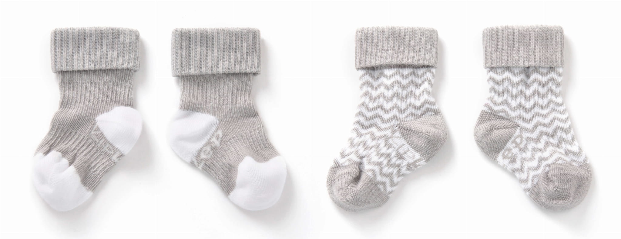 Stay Socks posiadają dwie innowacyjne strefy „stay on”, które zapobiegają zsuwaniu się skarpetek. To elastyczne paski wszyte w materiał na podbiciu oraz tuż przed palcami. Dzięki nim skarpetki idealnie przylegają do stopy, zapewniając komfort i stabilność. Dodatkowo, skarpetki wyposażono w miękki, płaski szew na palcach, który nie powoduje podrażnień. Stay Socks to schludne i wygodne skarpetki niemowlęce, wyróżniające się swoją inteligentną formą wykonania.