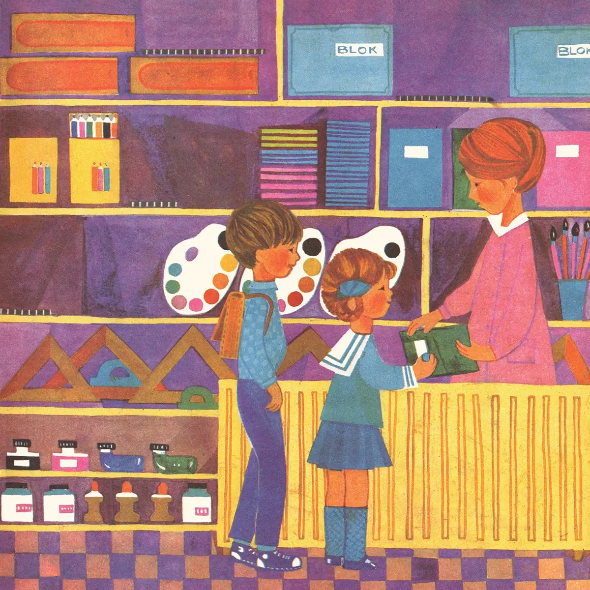 Wytnijcie z ostatnich stron książki towary i koszyk, by wybrać się na zakupy. Rymowany tekst przeprowadzi was po sklepach, i to nie byle jakich – niektóre trudno dziś znaleźć. Wstąpcie do obuwniczego i papierniczego, do mydlarni i kwiaciarni, odwiedźcie SAM spożywczy i wypełnijcie swój koszyk wszystkim, czego wam trzeba!