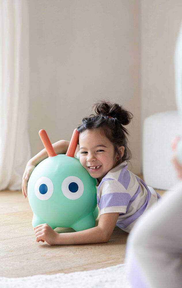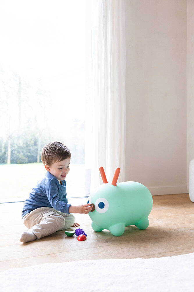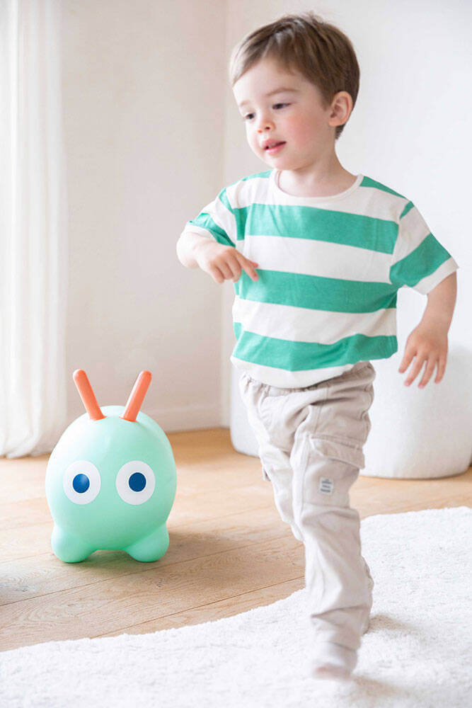 Idealny do domu, ogrodu lub na taras. Łatwy do napompowania (pompka w zestawie) i transportu. Skoczek przeznaczony jest dla dzieci od 1. roku życia (siedzisko na wysokości 25 cm). Wykonany został z bardzo wytrzymałego winylu, zachwyca niebanalnym designem i kolorystyką. Ma kształt wydłużonej (idealnej do siedzenia) uroczej gąsienicy z długimi czułkami, które mogą służyć za poręczne uchwyty podczas zabawy oraz piękne, intensywne kolory. Zabawka nadaje się idealnie do treningu równowagi, panowania nad własnym ciałem, koordynacji ruchowej i siły mięśni. Nadaje się także do relaksu na świeżym powietrzu. Pobudza wyobraźnię i kreatywność, zachęca do aktywności, zdobywania nowych doświadczeń i umiejętności.