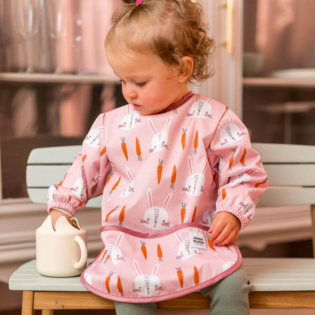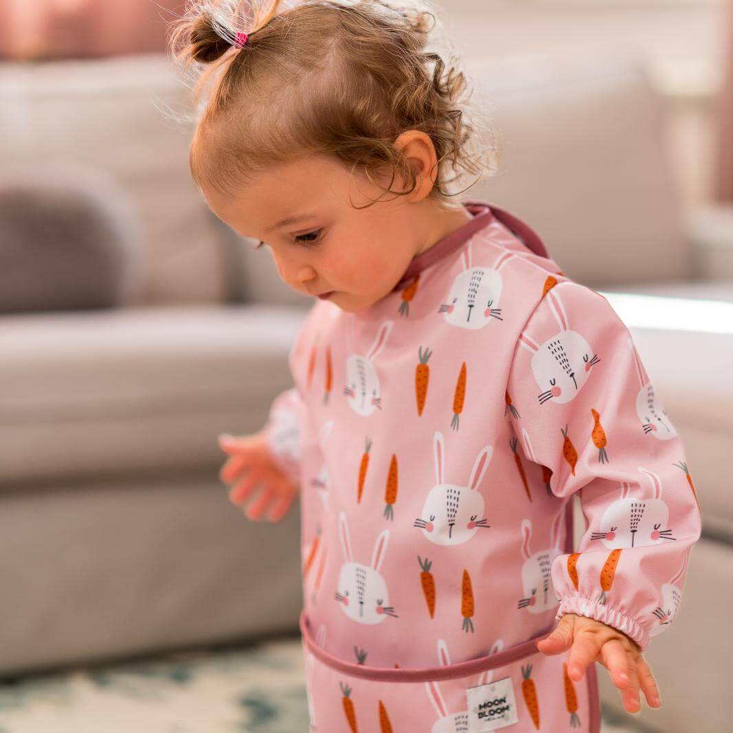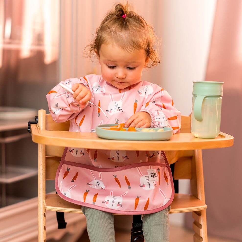 Śliniak z długim rękawem Moon Bloom to absolutnie niezbędny pomocnik podczas rozszerzania diety dziecka. Sprawi, że Twój maluch będzie suchy i czysty a posiłek będzie świetną zabawą. Dobrze przylega do ubranka, a piękne oraz oryginalne wzory bawią i uczą.