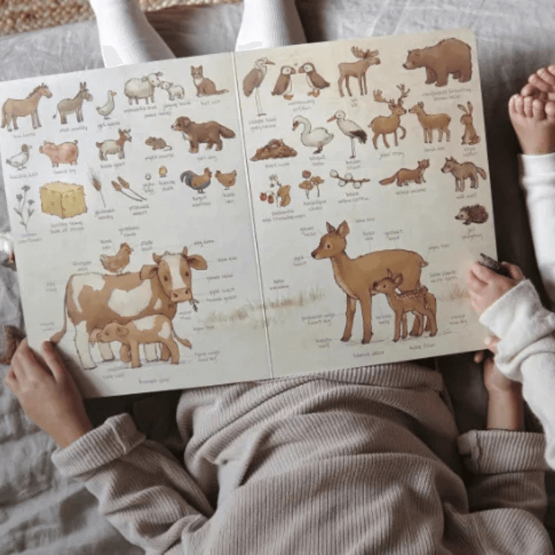 W tym przepięknym słowniku obrazkowym znajdziesz ilustracje zwierzat oraz roślin z podpisami w j. polskim i angielskim. Skonsultowany z native speakerką oraz specjalistką do spraw dwujęzyczności dzieci. Bliskościowe ilustracje niczym z „Dziecko w brzuchu mamy” i estetyczna kolorystyka.