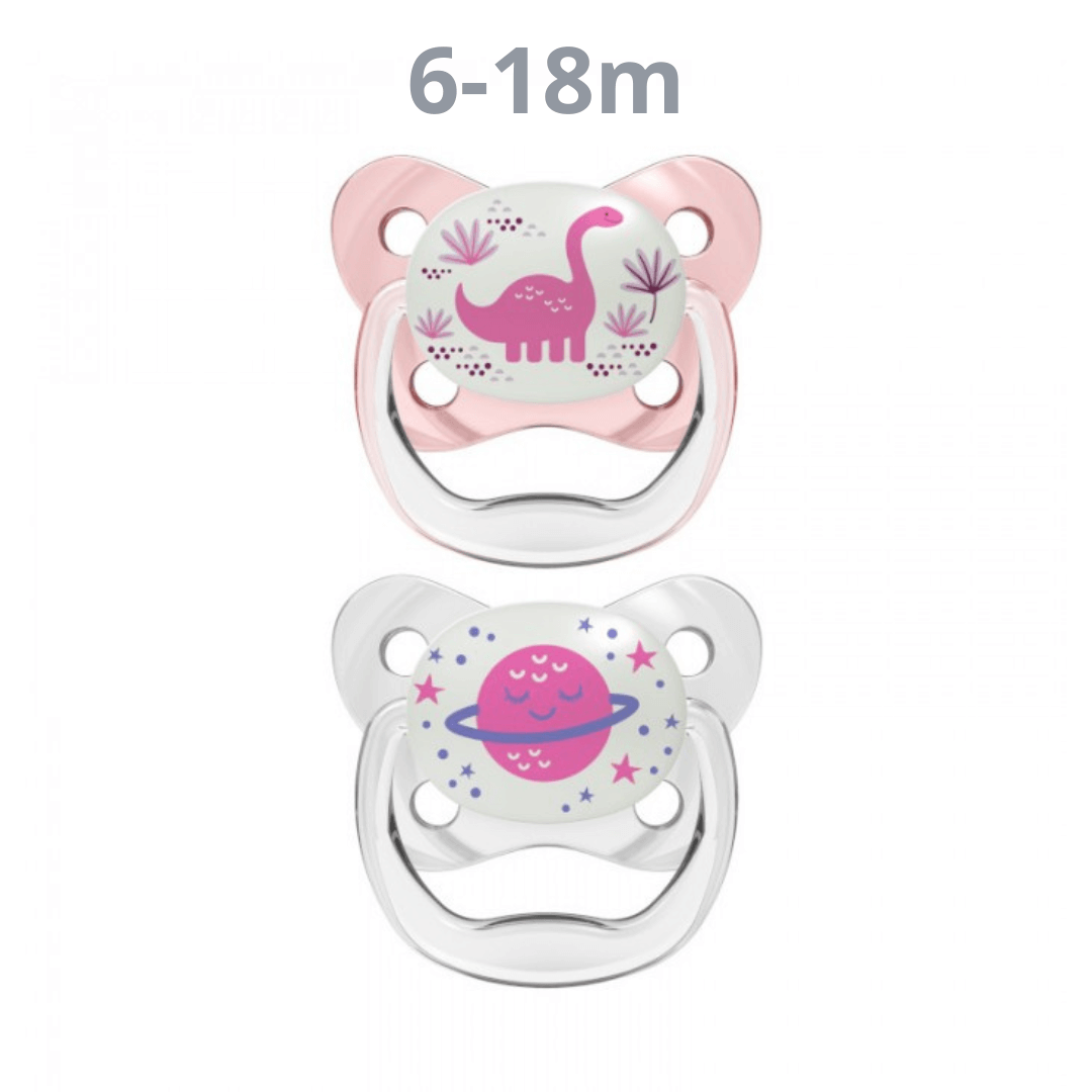 Smoczki ortodontyczne Prevent 2-pack, świecący w ciemności różowy