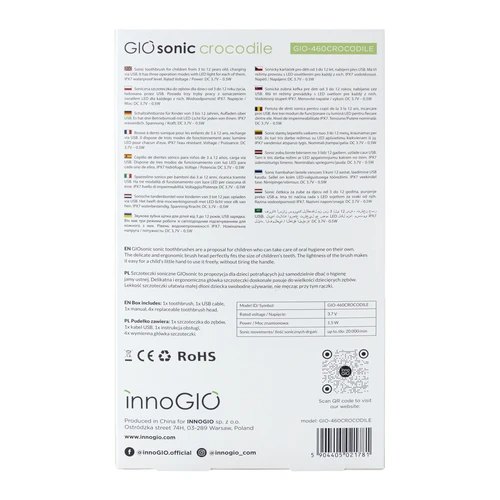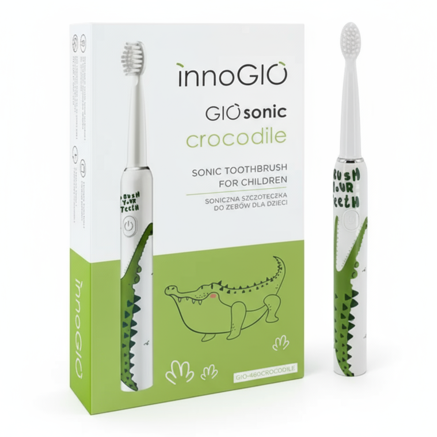 Soniczna szczoteczka GIOsonic Crocodile to propozycja dla dzieci potrafiących już samodzielnie dbać o higienę jamy ustnej