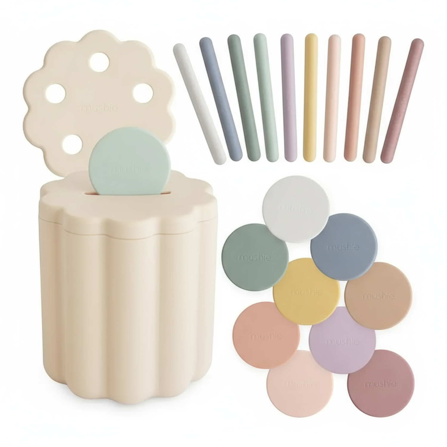 Pozwól dzieciom uczyć się sortowania i dopasowywania z pomocą Sortera Monet i Patyczków Mushie