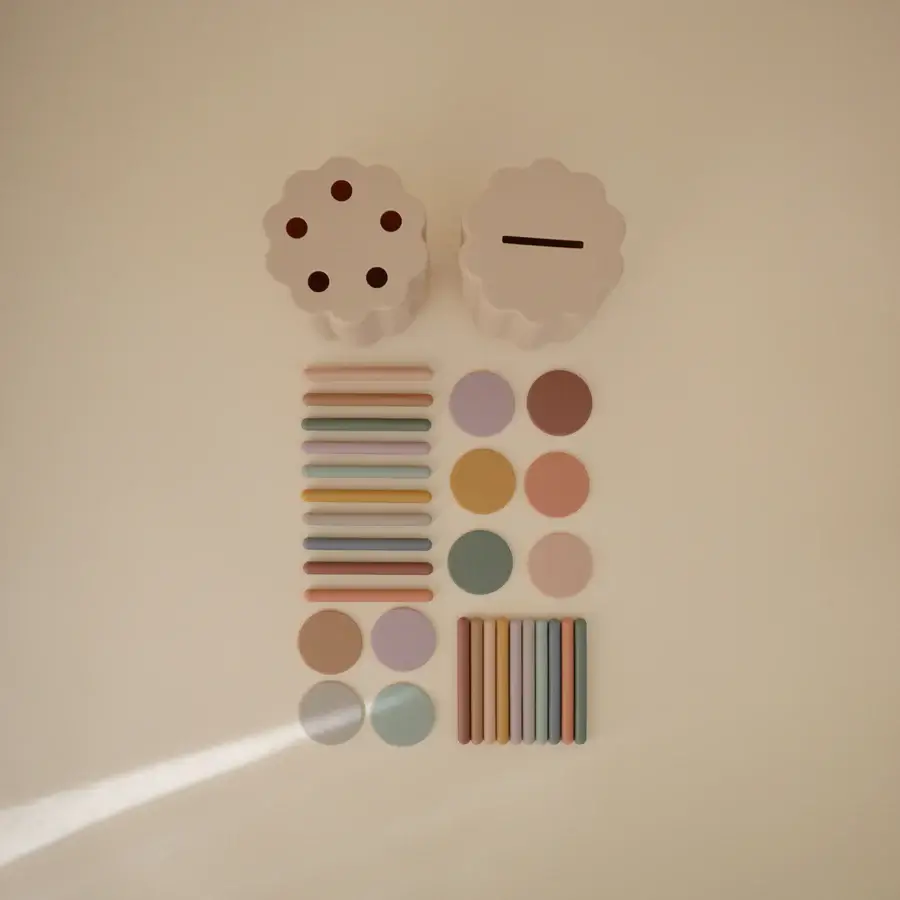 Dzięki 20 kolorowym monetom i patyczkom maluchy mogą ćwiczyć dopasowywanie każdego elementu do odpowiedniego otworu, co wspomaga rozwój umiejętności motorycznych i koordynacji ręka-oko. Niezależnie od tego, czy uczą się sortować, czy dopasowywać, ta wszechstronna i angażująca zabawka zapewnia godziny edukacyjnej rozrywki dla maluchów.