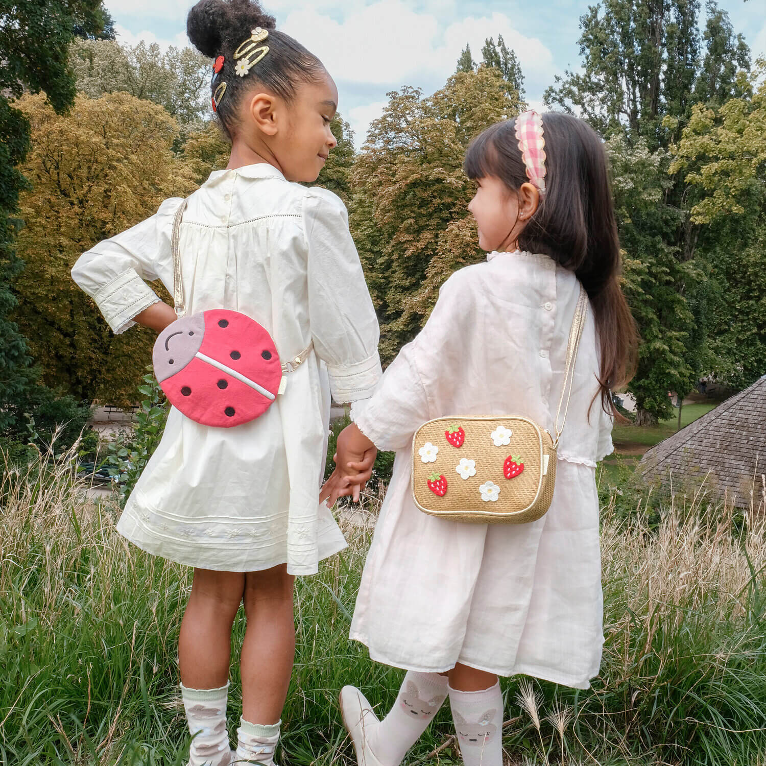 Poczuj wiosnę dzięki tym słodkim spinkom w kształcie stokrotek! Każda spinka ozdobiona jest dwiema uroczymi stokrotkami i osadzona na złotej wsuwce owiniętej błyszczącą tasiemką rypsową.