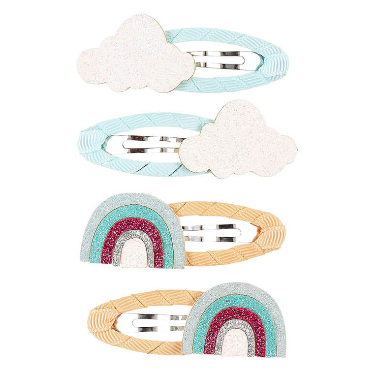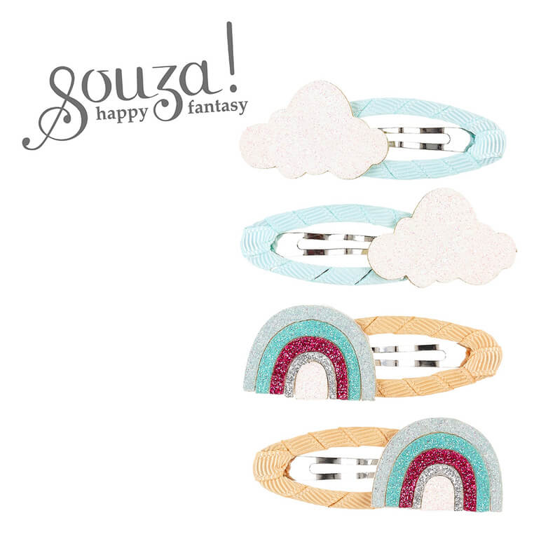 Spinki do włosów owinięte wstążką brokatowe tęcze i chmurki Yaella, 4szt.