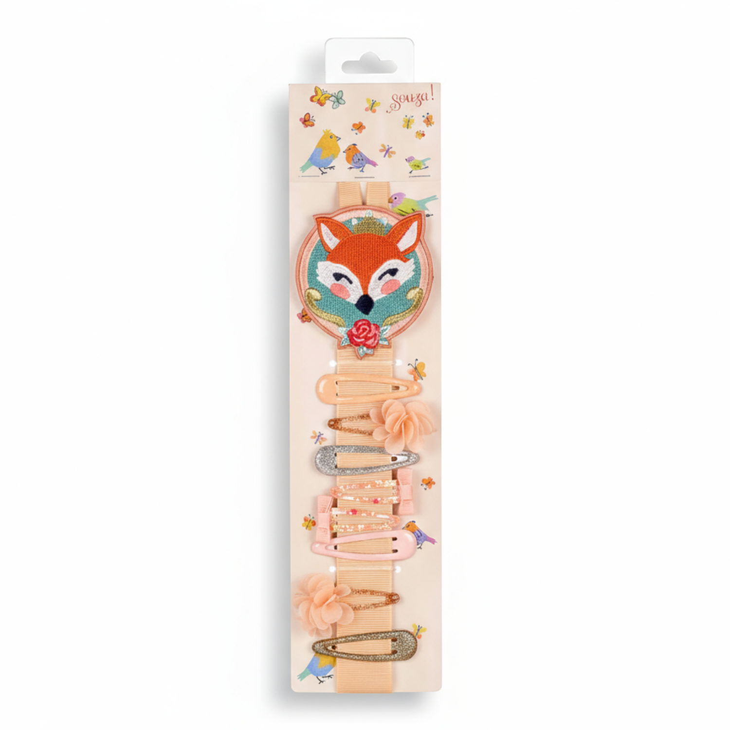 Komplet ośmiu spinek do włosów z wieszaczkiem z aplikacją liska Resi holenderskiej marki Souza!