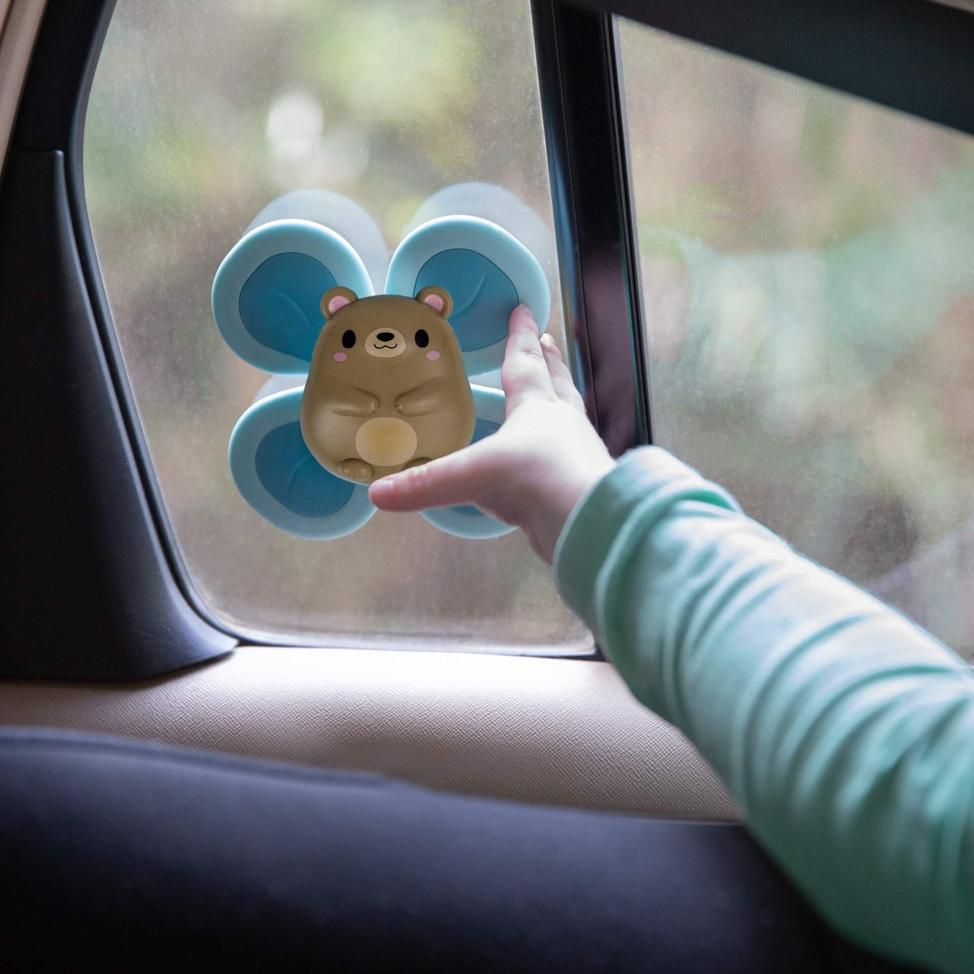 To angażująca zabawka sensoryczna do dotykania, potrząsania (wydaje dźwięk grzechotania), żucia i kręcenia. Zaprojektowane, aby zachęcać niemowlęta i małe dzieci do rozwijania umiejętności motorycznych, zabawy sensorycznej i nauki przyczynowo-skutkowej. Kontury i faktury zachęcają małe rączki do chwytania i kręcenia. Mocna przyssawka umożliwia łatwe przymocowanie do każdej gładkiej, nieporowatej powierzchni (np. wanny, kafelków, wysokich krzeseł, lustra, lodówki i szyb samochodowych). Spinner mocno się trzyma, umożliwiając stabilne obroty i samodzielną zabawę.