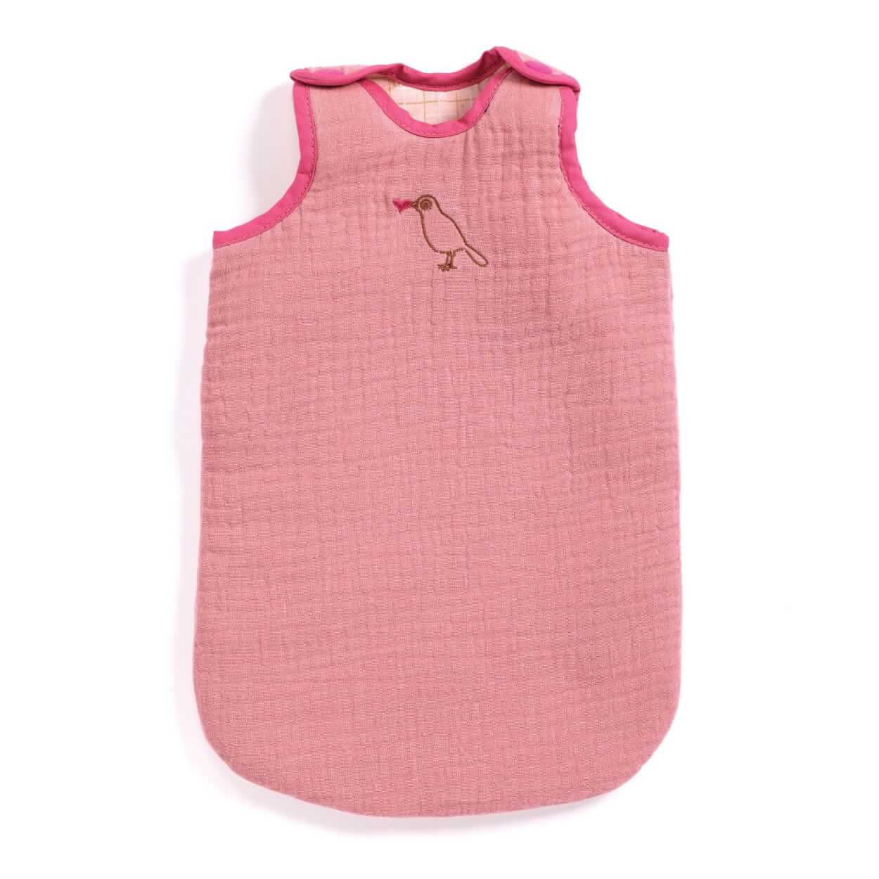 Śliczny, różowy śpiworek z wyhaftowanym ptaszkiem, by bobas w postaci lalki dobrze się wyspał i nie odkrywał się w nocy! Dzięki zatrzaskom na ramionach bardzo łatwo wsunąć do niego swoją lalkę. Śpiwór wykonany jest z miękkiej, grubszej bawełny w środku, a na zewnątrz z podwójnego muślinu.