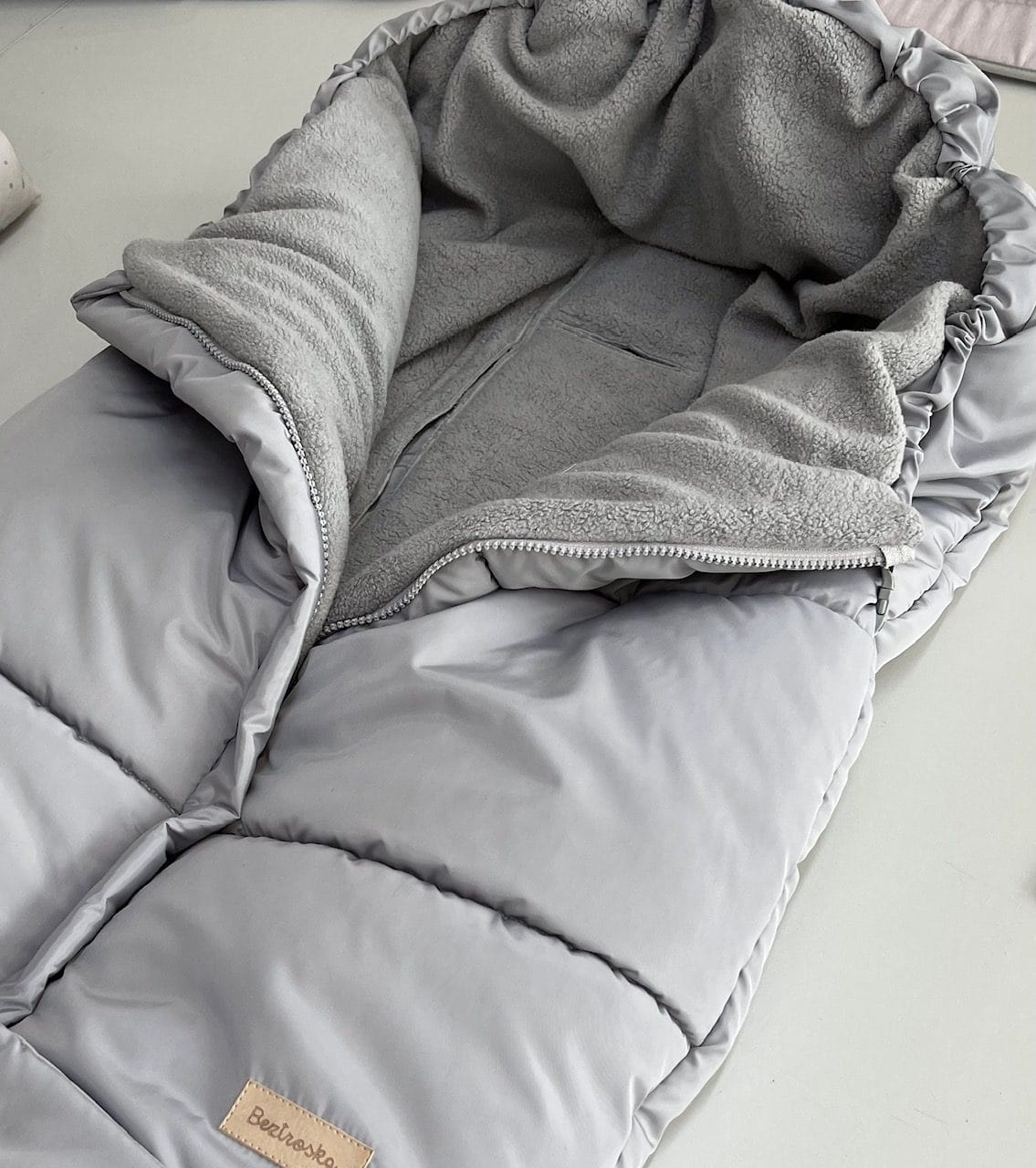 - W śpiworku zastosowano specjalną miękka podszewkę, która wygląda jak barankowy polarek ale jest naturalna. Wspaniała, koniecznie musicie jej dotknąć!