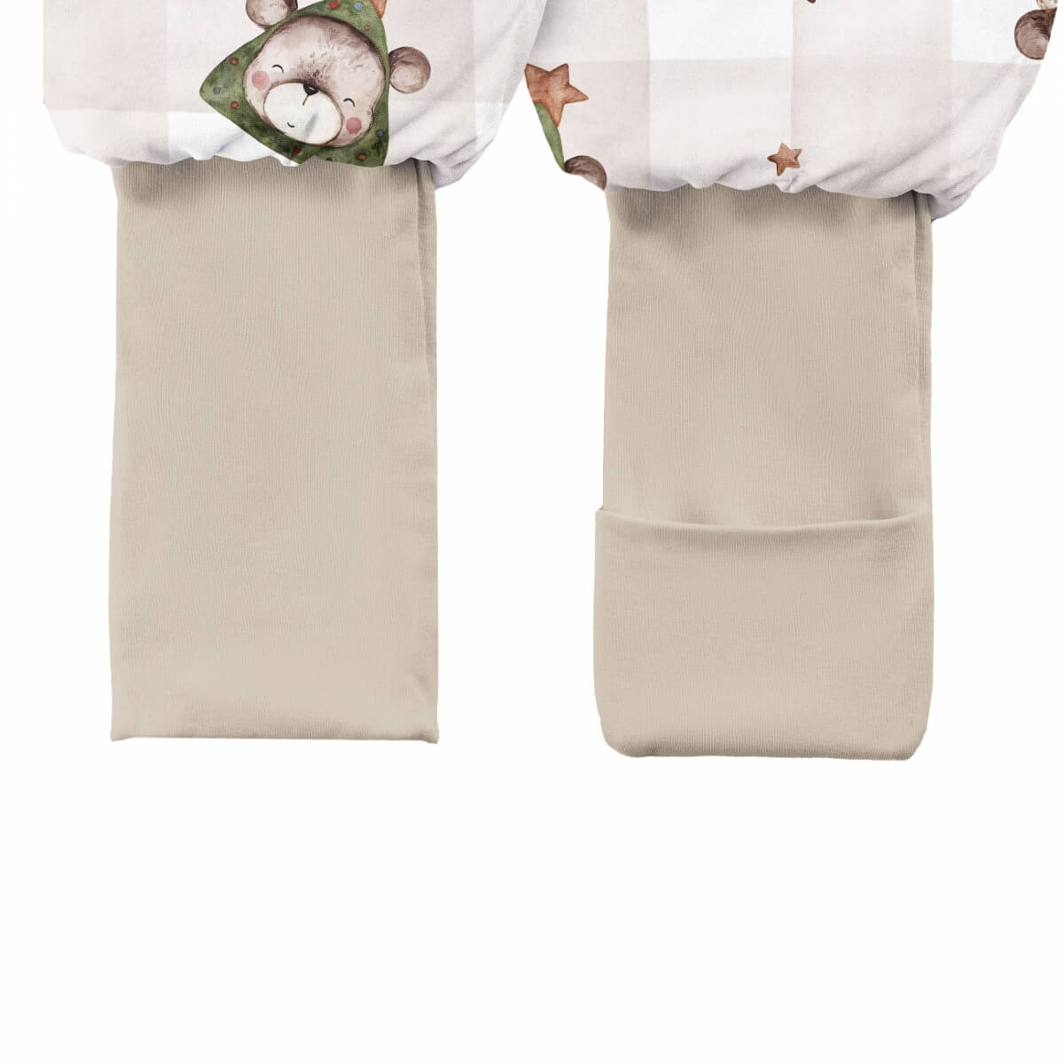 - przedłużane nogawki z przyjemnego jerseyu, dzięki czemu śpiworek służy dziecku na bardzo długi okres