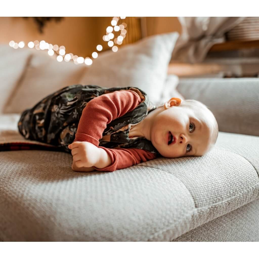 Śpiworek ma 2,5 w skali TOG. Jest przeznaczony do użytkowania przez cały rok w temperaturze pokojowej w zakresie 15-23° C.Śpiworek wykonany jest obustronnie z mięciutkiego Organicznego Jerseyu. W środku wypełniony antyalergiczną, lekką, silikonową włókniną zapewniającą ciepło i jeszcze więcej miękkości maluszkowi.