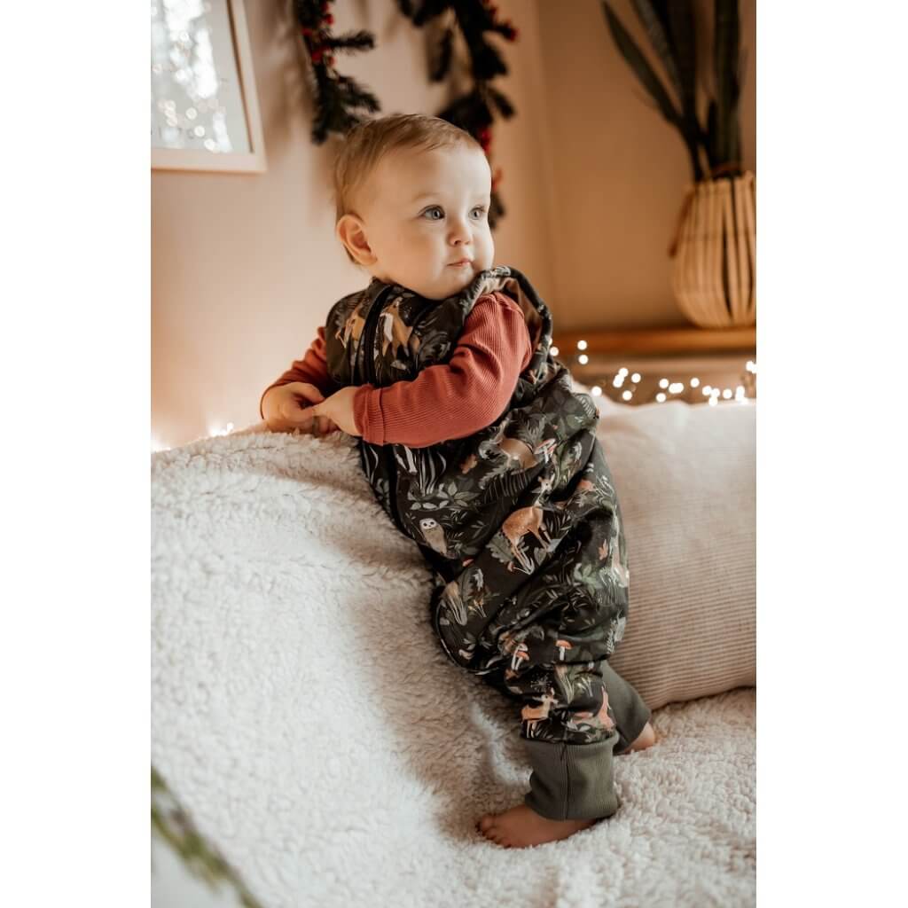 Śpiworek w przedniej części posiada suwak, który można rozpiąć przez całą długość, dzięki czemu łatwo się go ubiera i zdejmuje. Wyprofilowanie pod paszkami sprawia, że dla dziecka śpiworek jest wygodny jak piżamka i nie zsuwa się nawet gdy trzymamy dziecko na rękach. Śpiworek jest skonstruowany tak, by zapewnić dziecku maksimum wygody podczas snu i porannych harców. Gdy Maluszek śpi w śpiworku nie potrzebuje już kołderki, mamy pewność, że nie odkryje się podczas snu, ani nie naciągnie sobie kołderki na twarz. Śpiworek posiada długie nogawki z miękkiego bawełnianego ściągacza, do których dzięki mankietom można schować również stópki.