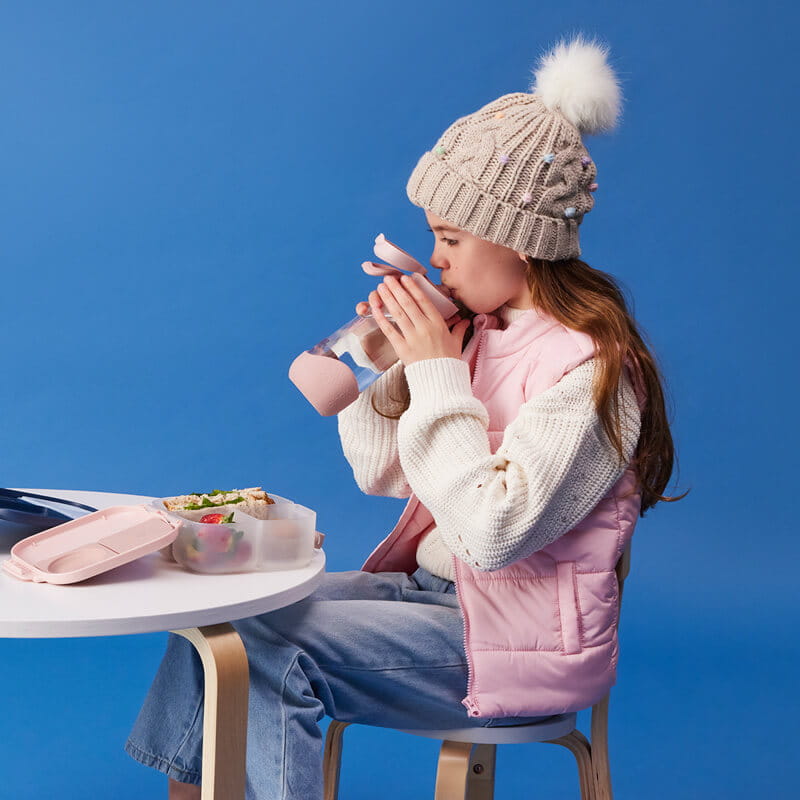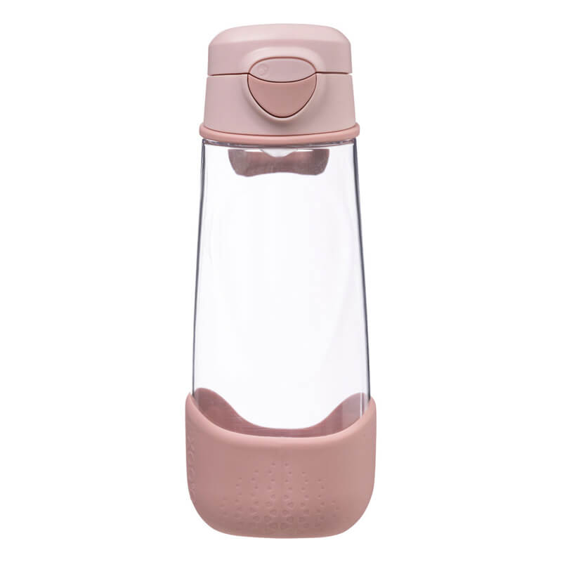 Przyda się na treningach, rowerowych wycieczkach a także w szkole i na spacerze. Wykonana z wyjątkowego tworzywa jakim jest Tritan™ wygląda jakby była szklana. Jest jednak dużo lżejsza i trwalsza. Lepiej niż szkło i plastik znosi dziecięcą żywiołowość. Nie wpływa na smak i zapach picia. Dla wygody dziecka butelce nadano dość nietypowy „trójkątny” kształt, który sprawia, że lepiej leży w dłoni. Nakładka na spodzie to nie tylko estetyczny detal, ale także dodatkowe zabezpieczenie butelki przed uszkodzeniem. Silikonowy ustnik pozwala na swobodne picie a ukryty w nim zawór zapobiega rozlaniu się płynu. By dostać się do ustnika wystarczy nacisnąć duży przycisk. Pokrywka otworzy się umożliwiając picie. Co ważne, dzięki blokadzie nie będzie uderzała dziecka w buzię podczas picia. By ułatwić przenoszenie butelki wyposażoną ją w funkcjonalny elastyczny uchwyt.