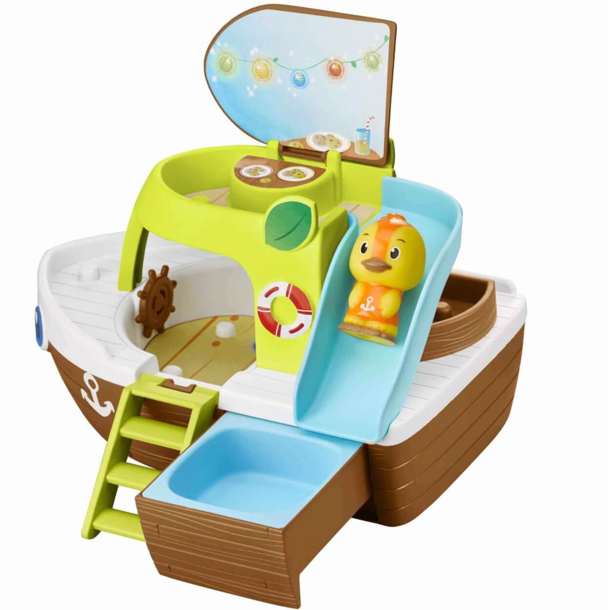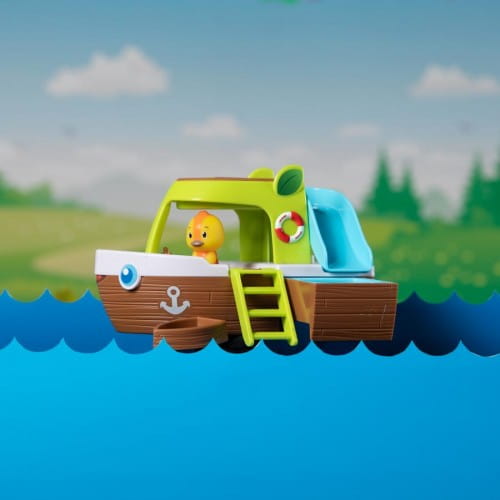 Czas na wakacje nad rzeką. Najlepsze miejsce na relaks i wspólną zabawę nad wodą to uroczy statek wycieczkowy. Wyciągnij drabinkę i wejdź na pokład statku. Otwórz dach aby wyczarować miejsce na piknik, wyciągnij basenik, do którego zwierzątka mogą ślizgać się po zjeżdżalni. Jest nawet mała łódź ratunkowa... tak na wszelki wypadek!