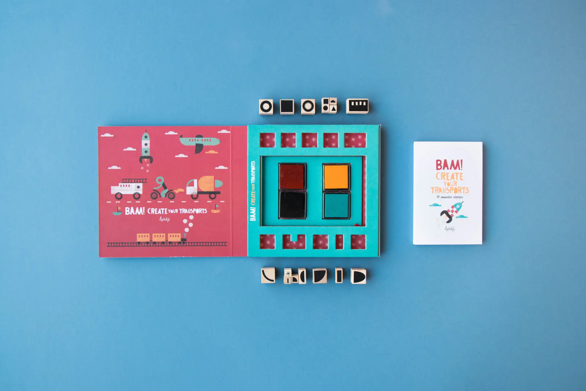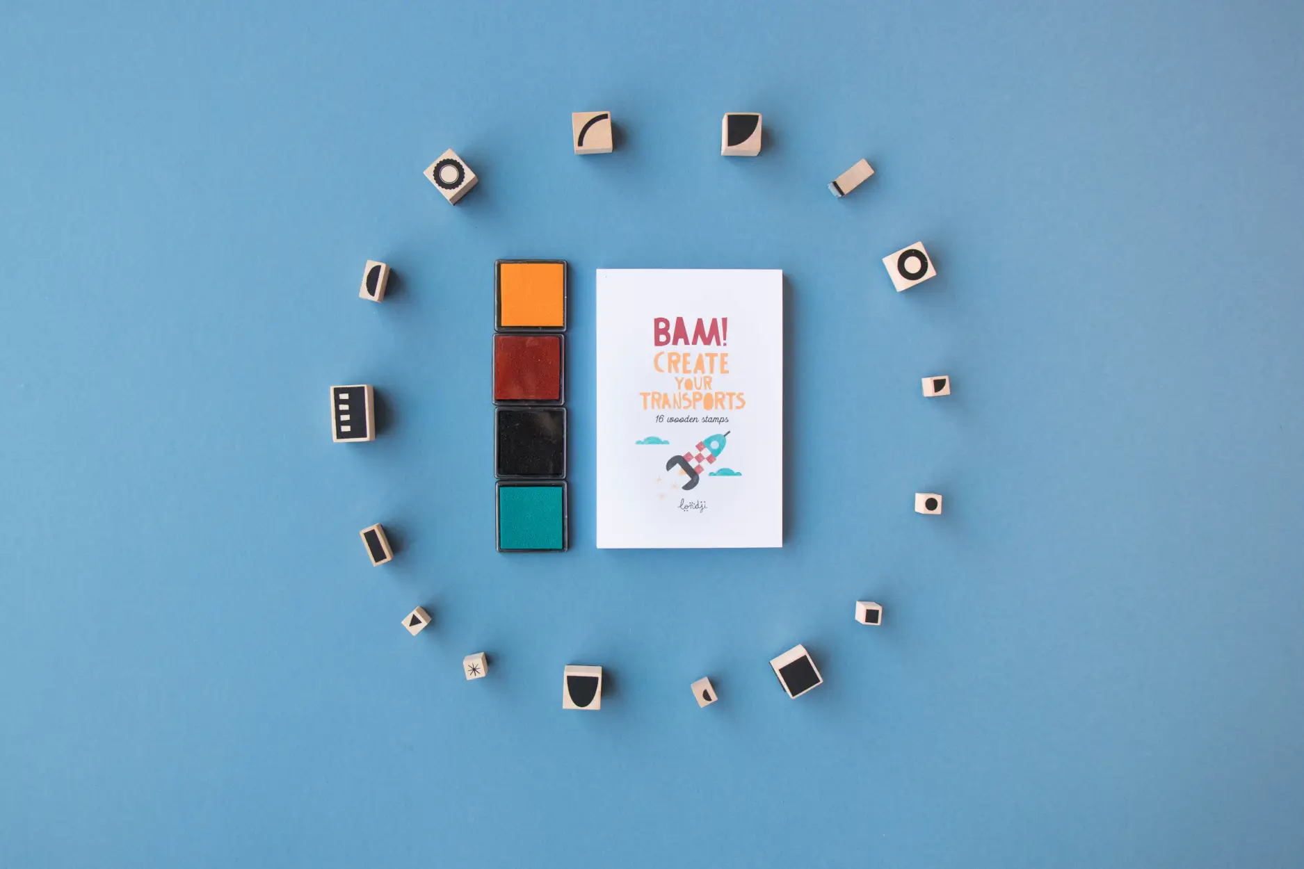 - Ilość sztuk: 16 stempelków, notes, 4 poduszki z kolorowym tuszem