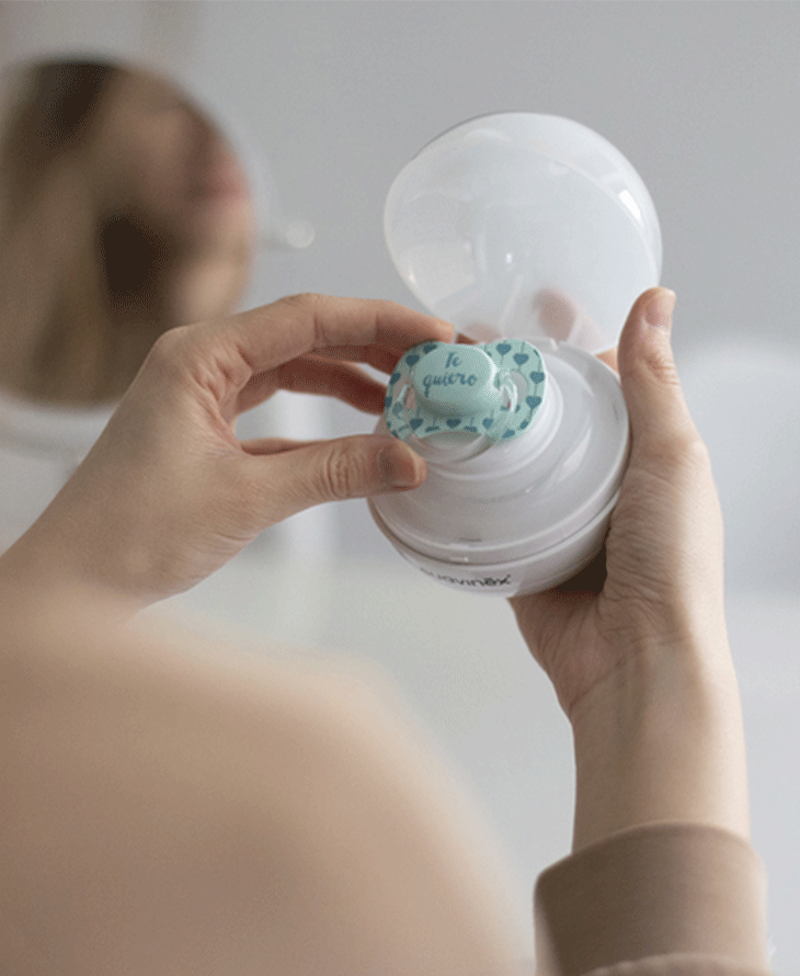 Urządzenie sterylizuje smoczki bez żadnego użycia środków chemicznych. Wykorzystuje TYLKO bezpieczną metodę sterylizacji światłem ultrafioletowym (UV). Jest bardzo prosty i szybki w użyciu, wystarczy wcisnąć przycisk bez konieczności napełniania sterylizatora wodą. Utrzymuje sterylne smoczki przez 24 godziny, dopóki pokrywa pozostaje zamknięta.