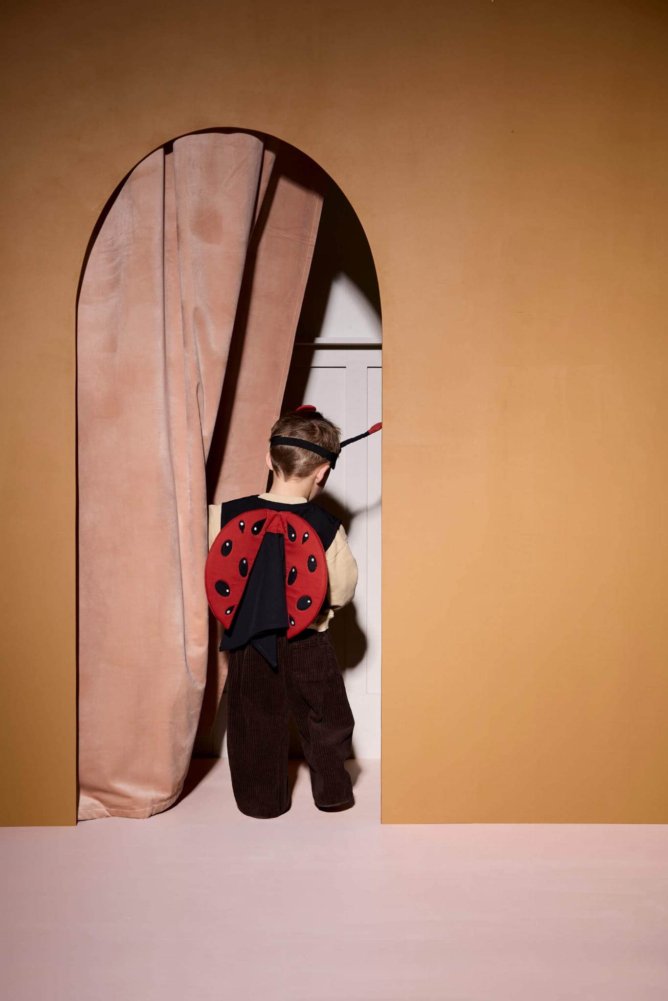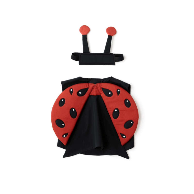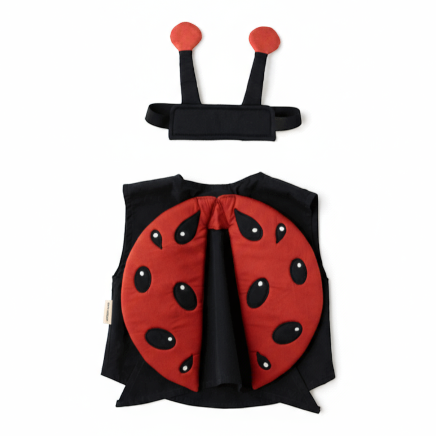 W ogrodzie biedronki są prawdziwymi pomocnikami, bo zjadają owady szkodzące roślinom. Strój Biedronki od Elodie to idealna inspiracja do kreatywnej zabawy. Zestaw zawiera miękką czarną kamizelkę, ciemnoczerwone skrzydełka z haftowanymi czarnymi kropkami oraz opaskę z miękkimi, elastycznymi czułkami. Całość łatwo zakłada się i zdejmuje dzięki wygodnym zapięciom na rzepy.