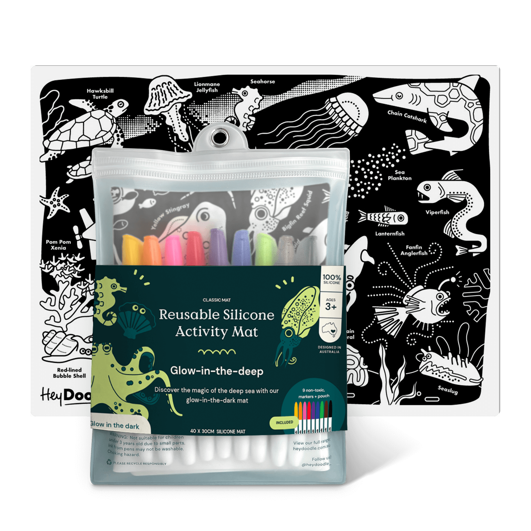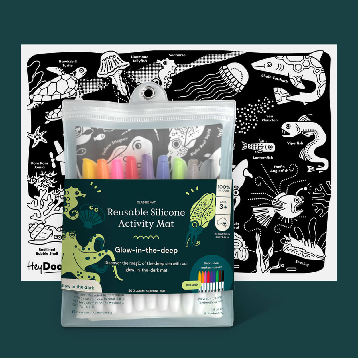 Świecąca w Ciemności Duża Mata Silikonowa do Kolorowania A3 - Morskie Głębiny