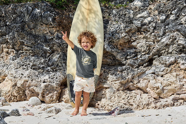 Kolekcja Splash & Fun to seria produktów, przeznaczonych do kąpieli i spędzania dnia na plaży czy basenie. Wszystkie elementy garderoby – pieluszki, szorty, koszulki czy nakrycia głowy – są szybkoschnące i doskonale chronią delikatną skórę dziecka przed promieniowaniem UV. Dodatkowo są komfortowe w noszeniu i użytkowaniu oraz wyróżniają się niebanalną kolorystyką.