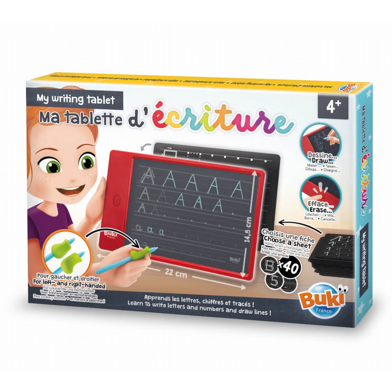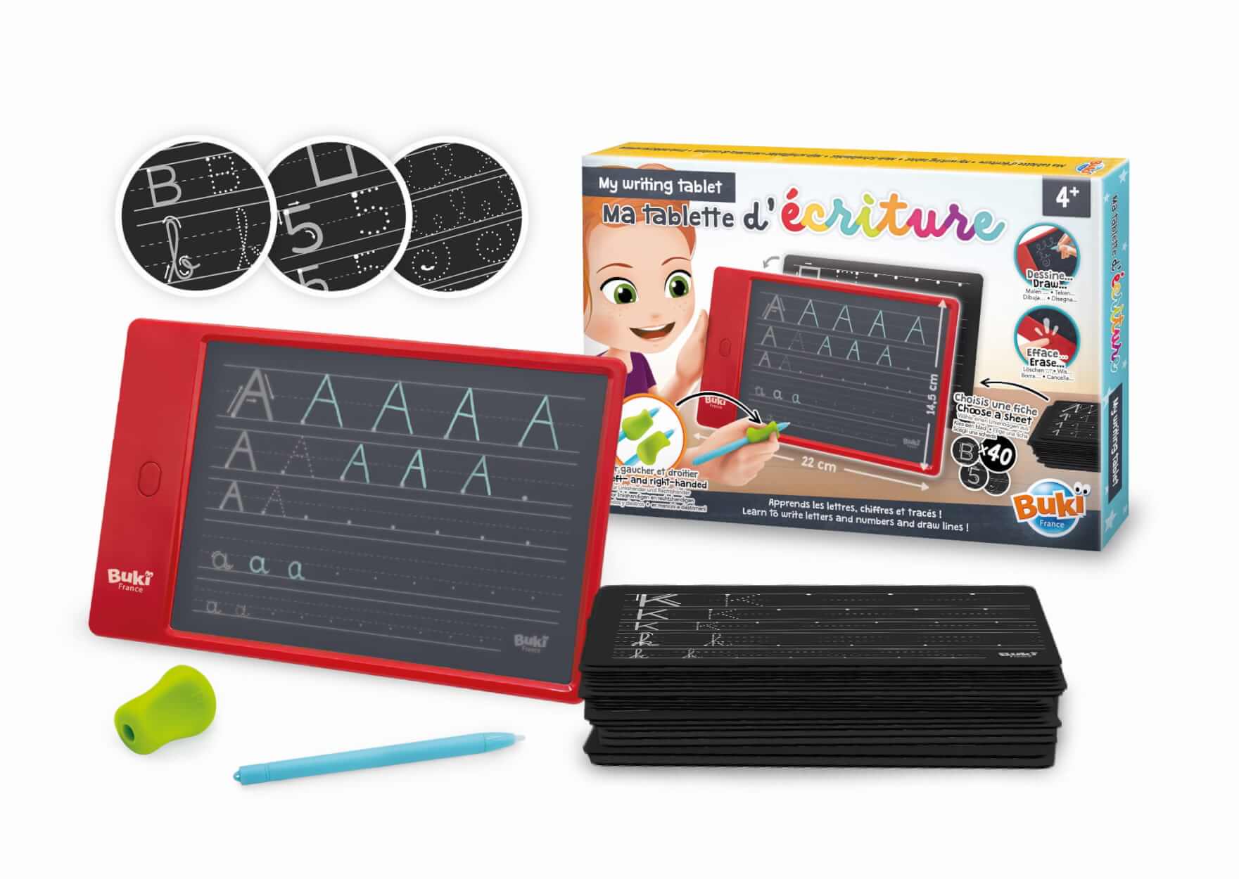 W zestawie znajduje się uchwyt na długopis (zarówno dla prawo jak i leworęcznych dzieci), wspomagający naukę prawidłowego trzymania długopisu. Ten uchwyt może być również używany na jednym z własnych długopisów.