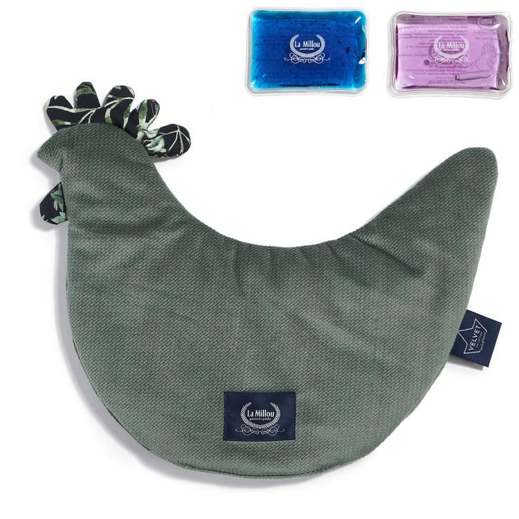 Thermo Hen to niezwykle praktyczny i przyjemny w użytkowaniu termofor i kompres chłodzący – przytulanka w kształcie kultowej Kury Babci Dany. Thermo Hen uszyty jest z miękkiego i przewiewnego Minky lub Velvetu, a grzebień i gulgotka z bawełny drukowanej. Wierzch i spód termoforu naszyty jest na cienką warstwę puszystej włókniny, co zwiększa komfort użytkowania. Kieszeń wewnętrzna uszyta jest z Minky i bawełny. Jej kształt i wielkość zapewniają wygodne wkładanie i bezpieczne przytrzymanie wkładu ogrzewającego lub chłodzącego.
