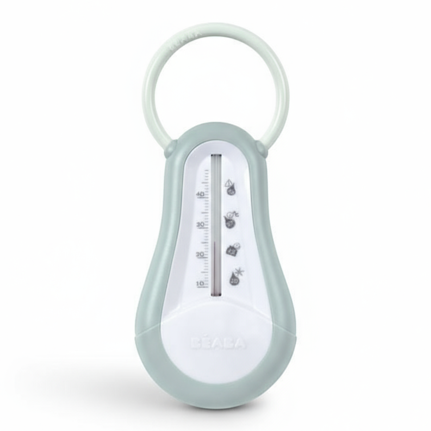 Termometr francuskiej marki BEABA przeznaczony do mierzenia temperatury wody do kąpieli maluszków. Jest wyjątkowo wygodny w użyciu - unosi się na wodzie, ma wyraźną, czytelną skalę i dodatkowe oznaczenia, pozwalające natychmiast zorientować się czy temperatura wody jest optymalna dla dziecka. Jego zaokrąglony kształt sprawia, że jest całkowicie bezpieczny dla dziecka – nie ma ryzyka skaleczenia. Termometr posiada ponadto praktyczny uchwyt do zawieszania w łazience lub zamocowania w kosmetyczce maluszka.