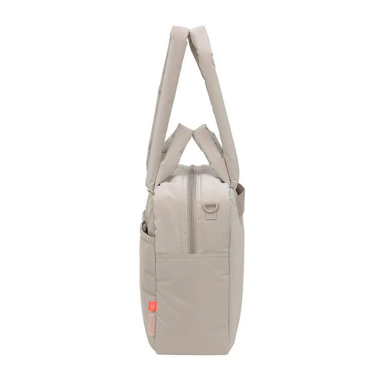 - wiele możliwości noszenia: w dłoni (dwie krótsze miękkie rączki), na ramieniu (dwie dłuższe miękkie rączki), na ramie wózka (karabińczyki – w zestawie) czy na rączce walizki (pasek na plecach torby);