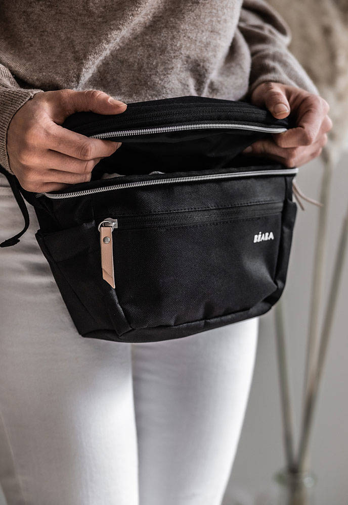 Torba oferuje kilka możliwości użytkowania, w zależności od bieżących potrzeb. Na co dzień bez trudu pomieścisz w niej niezbędne podczas spaceru czy krótkiej wyprawy dziecięce akcesoria oraz swoje drobiazgi – ma ona bowiem postać saszetki - organizera o optymalnej pojemności 3 l, którą – dzięki wielofunkcyjnemu paskowi - można powiesić na ramie wózka lub kierownicy roweru, ale również zaczepić w pasie jak nieco większą torebkę - „nerkę” lub przewiesić przez ramię. Co więcej - możesz ją też błyskawicznie przekształcić w dużą torbę typu shopper i zyskać kolejne 8 l pojemności!